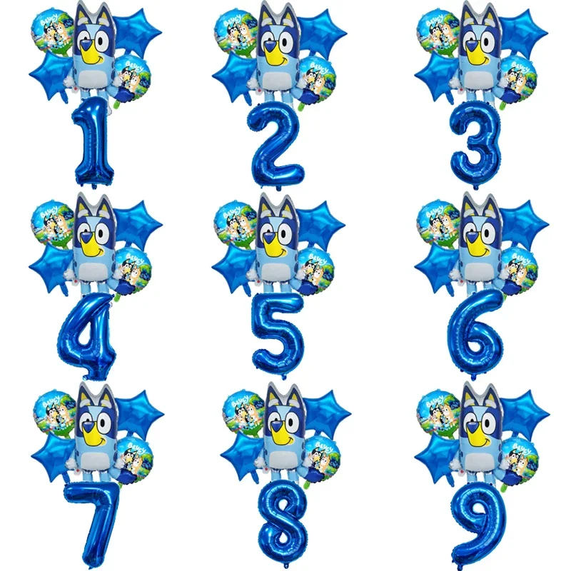 6Pcs Bluey Bingo Balloon Set Birthday Decoration Balloons Cute Foil Balloons Age Number Balloon Set ...
