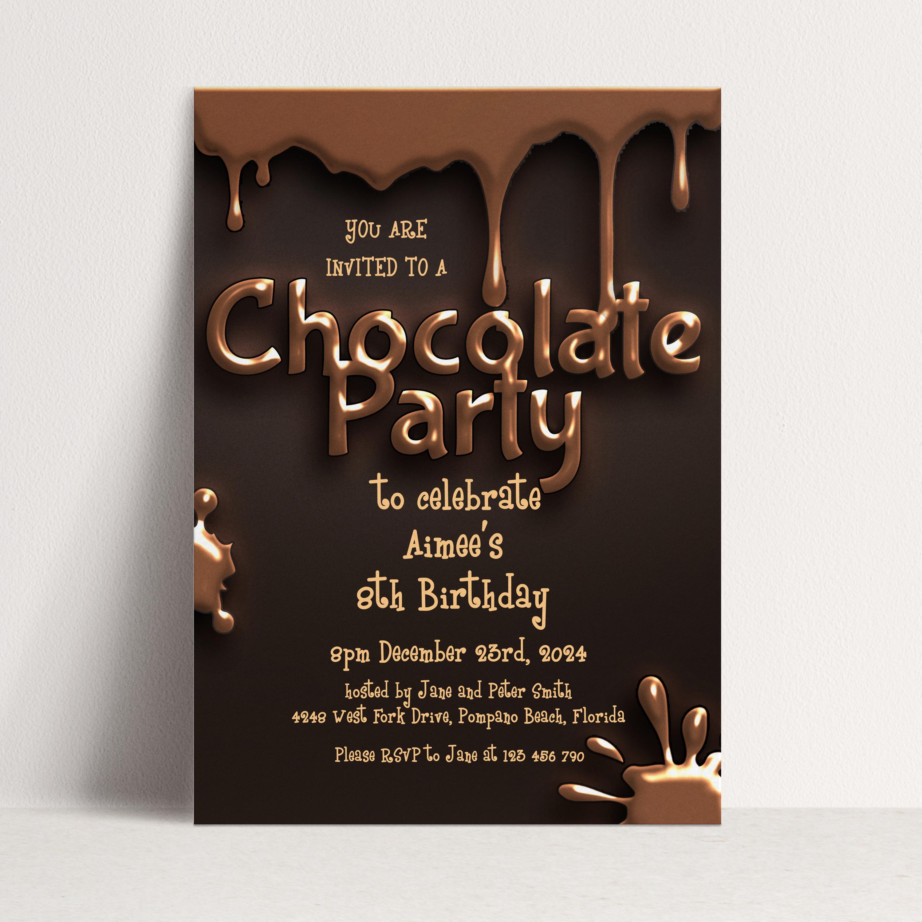 Chocolate Party Invitation Chocolate Desserts Birthday Invitations ...