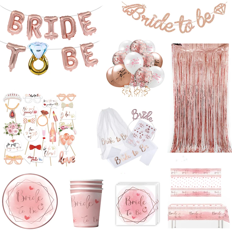 Bride To Be Party Decorations Balloons Napkin Cups Veil Sash Team Bride Wedding Decor Bachelorette P...