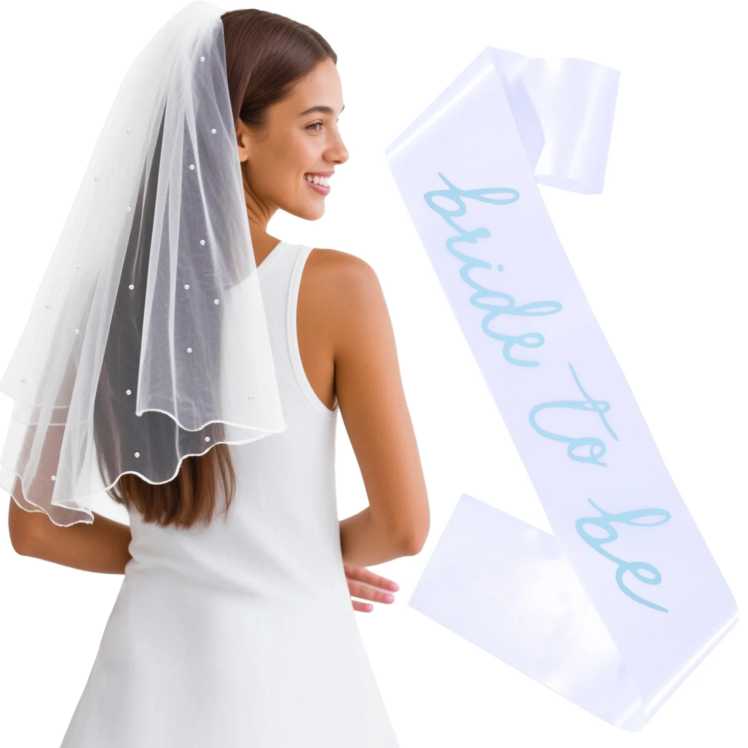 1Set Bride To Be Veil Satin Sash Hiarband Bridal Shower Wedding Dec...