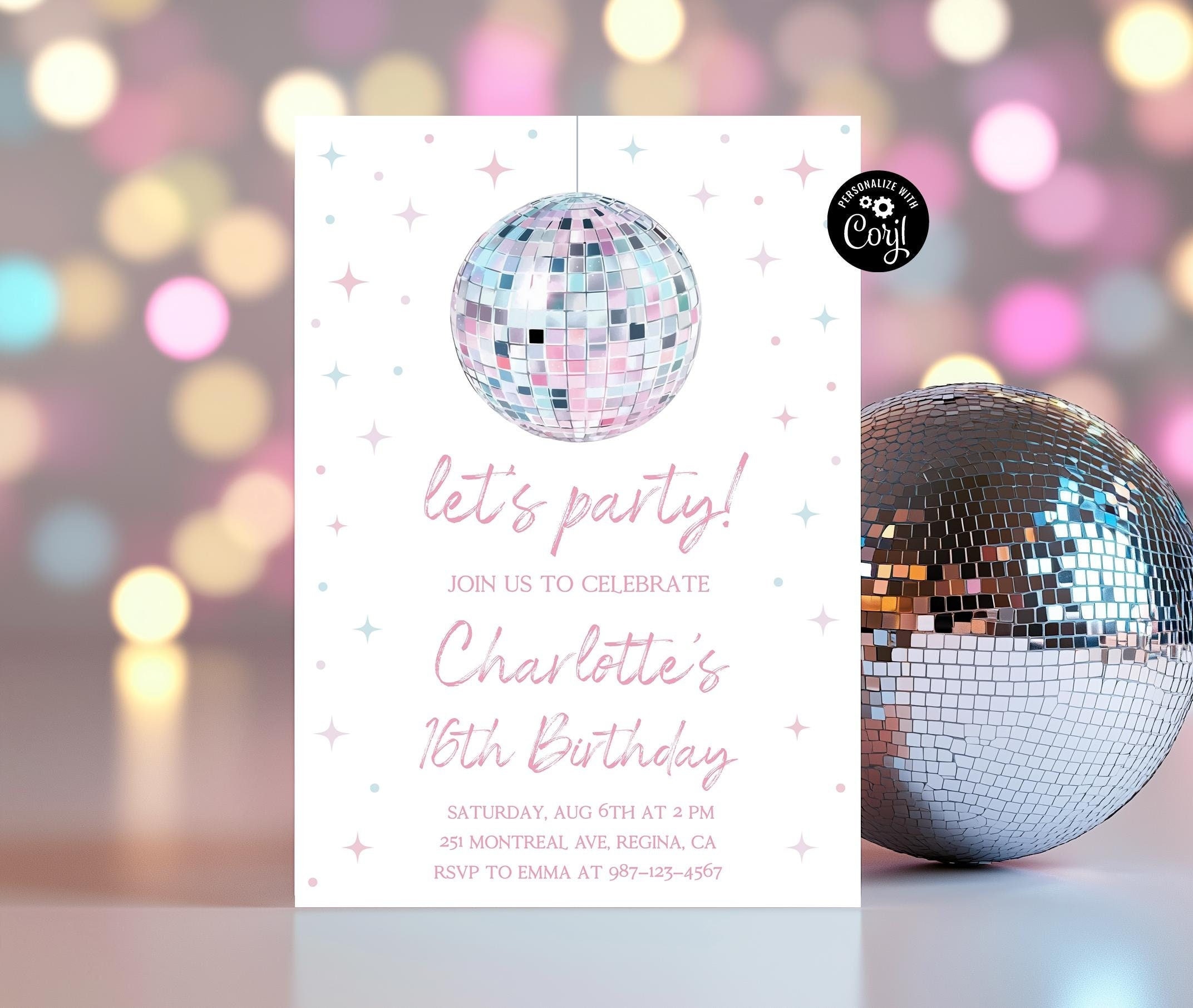 Disco Ball Birthday Invitation ANY AGE Disco Party Disco Birthday D...