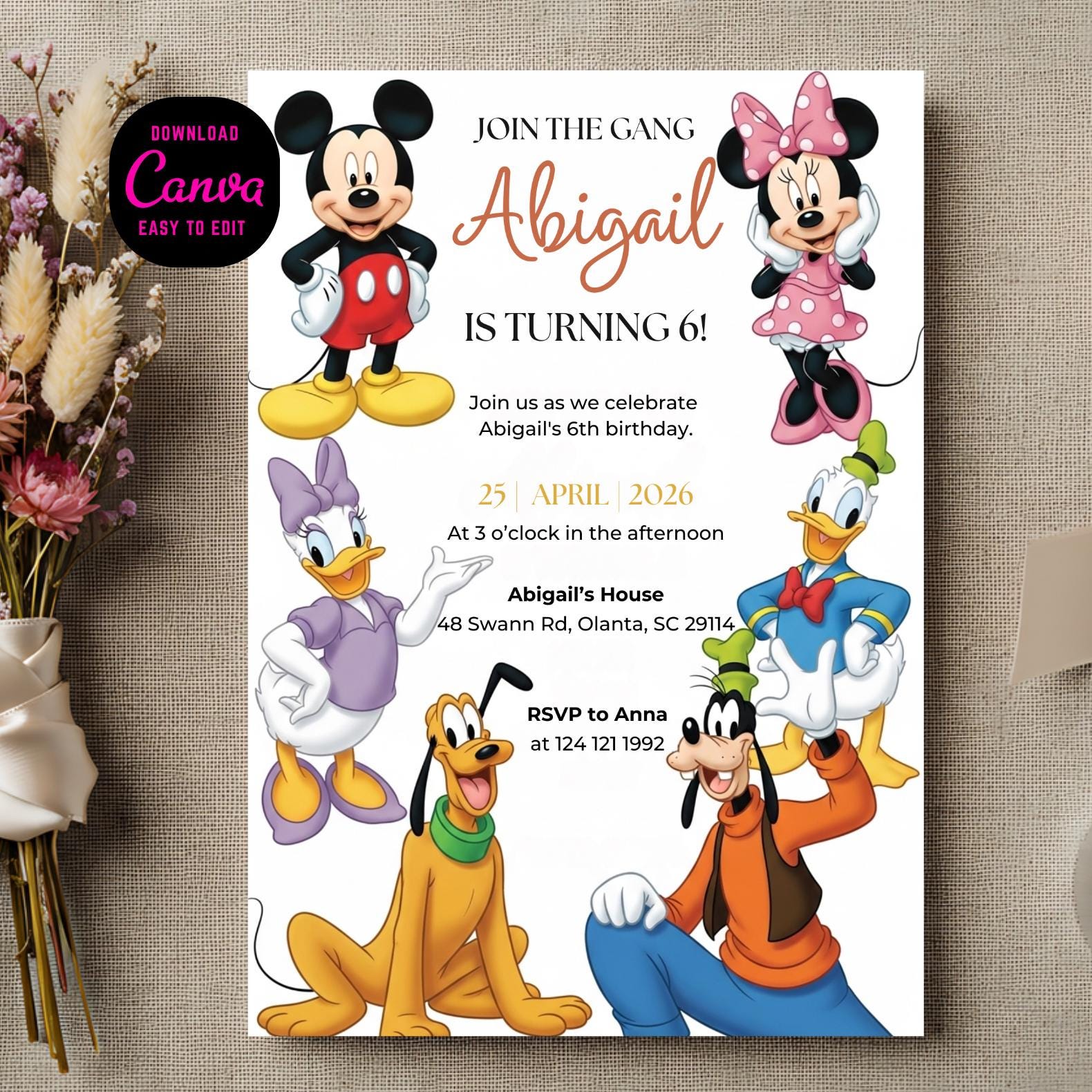 Mickey & Minnie Mouse Birthday Invitation Video | Editable Canv...