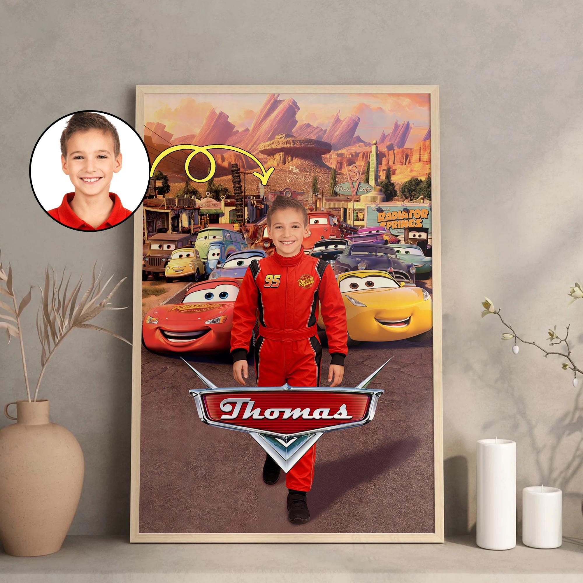 "Personalized Photo Disney Race Car Poster, Custom Racing Birthday Party Decor, Photo Portrait ...