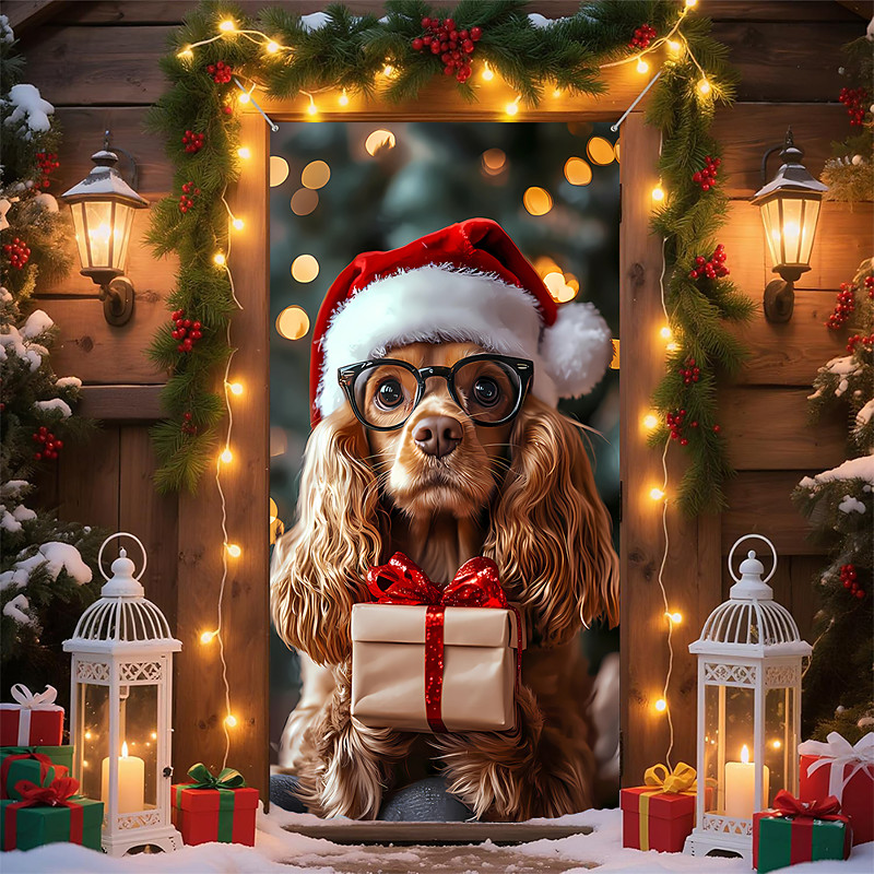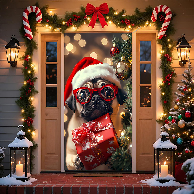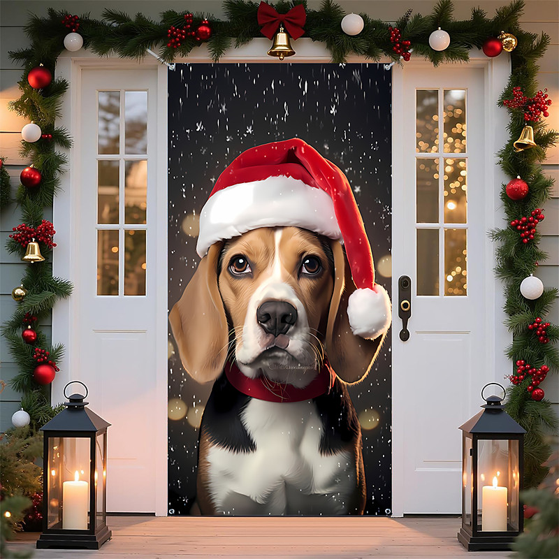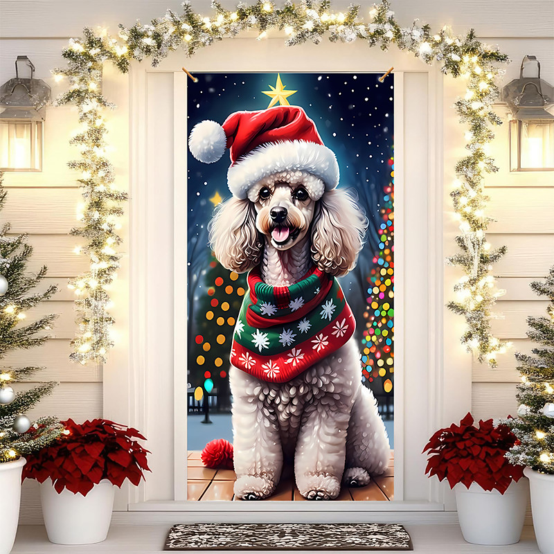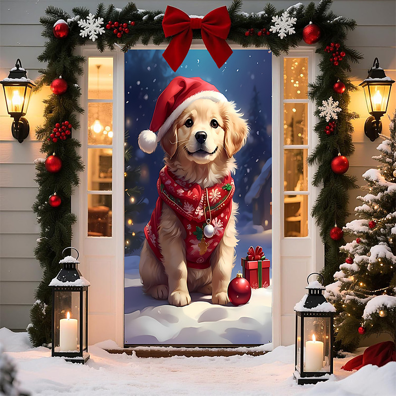 Christmas Posters Door Cover Outdoor Banners Dog Santa Claus Cute 3...