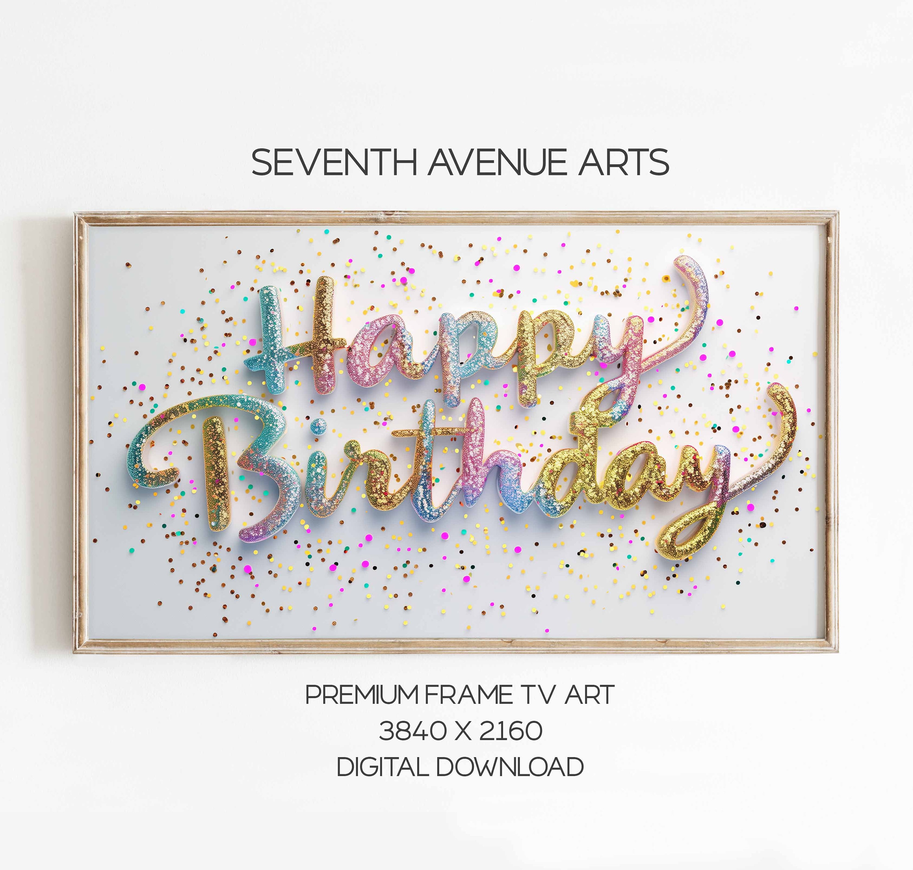 Happy Birthday TV Frame, Happy Birthday Frame TV Art,Glitter Frame ...