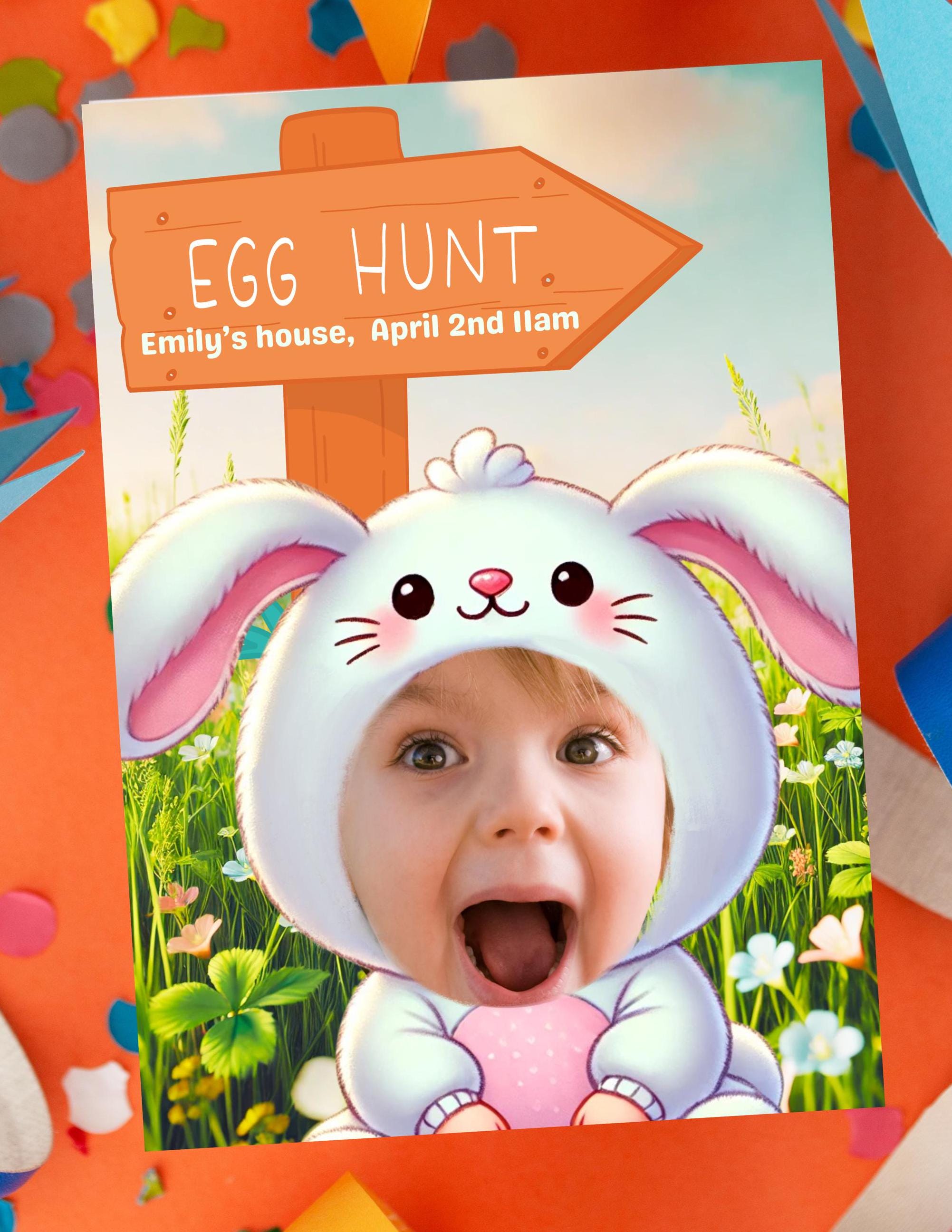 Easter Egg Hunt Poster Template, Happy Easter Party Invitation, Bun...