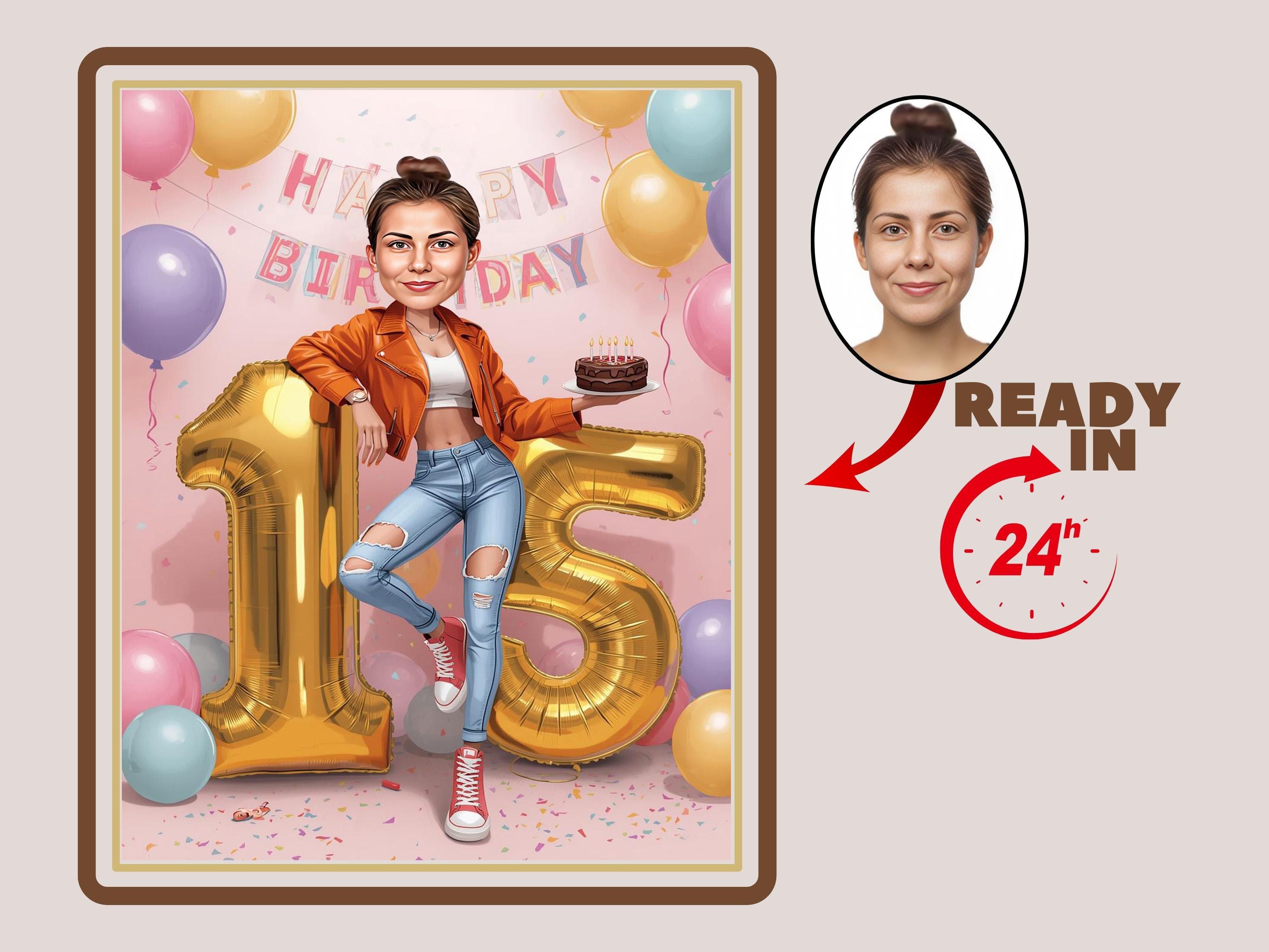 Custom caricature for 15th birthday, 15th anniversary, caricature drawing,greeting card, birthday ca...