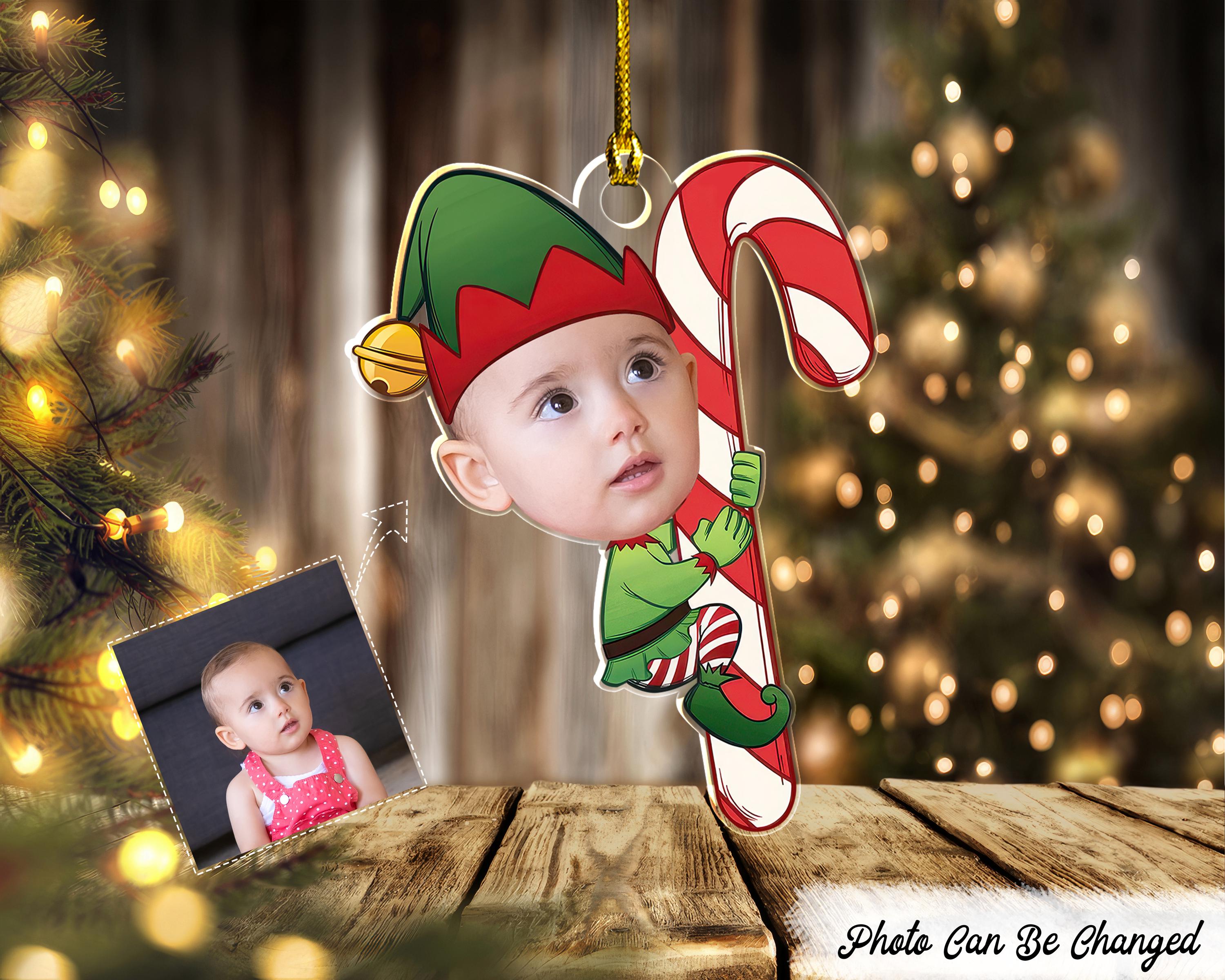 Personalized Cute Baby Elf Ornament, Custom Picture Ornament, Photo...