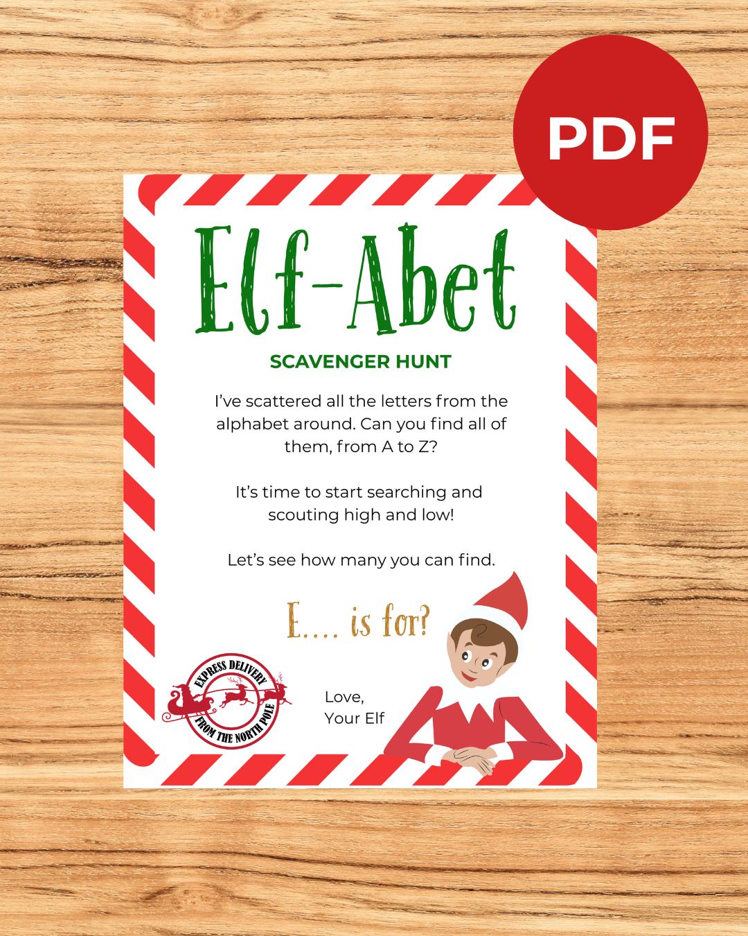 Elf-Abet Scavenger Hunt, Printable Elf Props, Christmas Elf Activit...