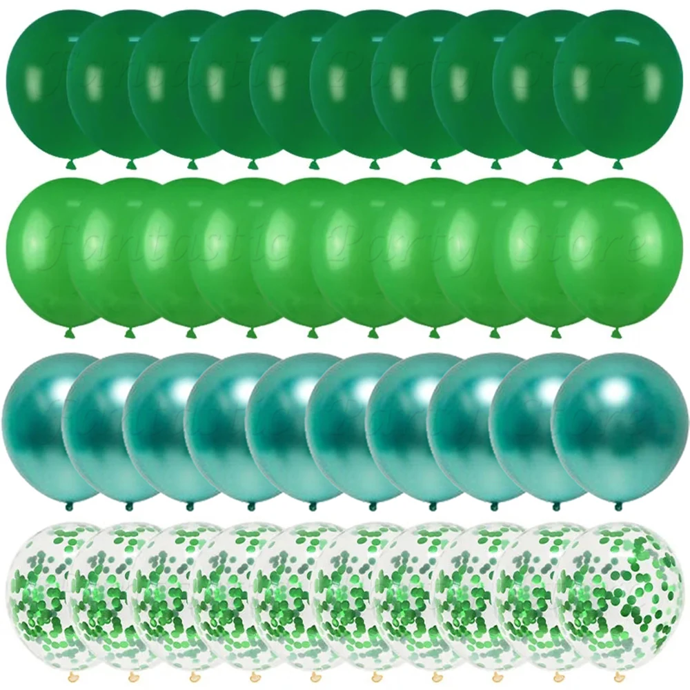 40pcs 12inch Green Balloons Set Emerald Green Dark Green Confetti Latex Balloons Jungle Safari Fores...