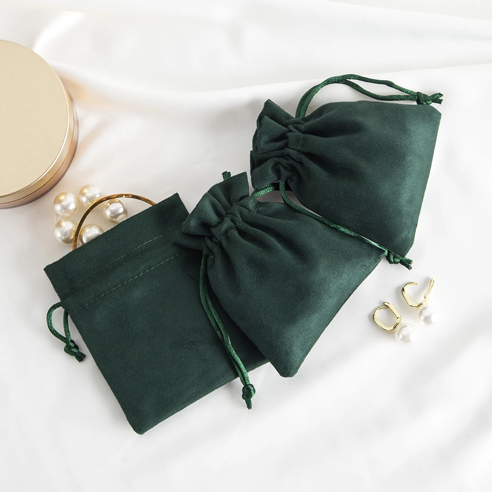 10pcs Dark Green Flannel Jewelry Packaging Bags Small Gift Drawstri...