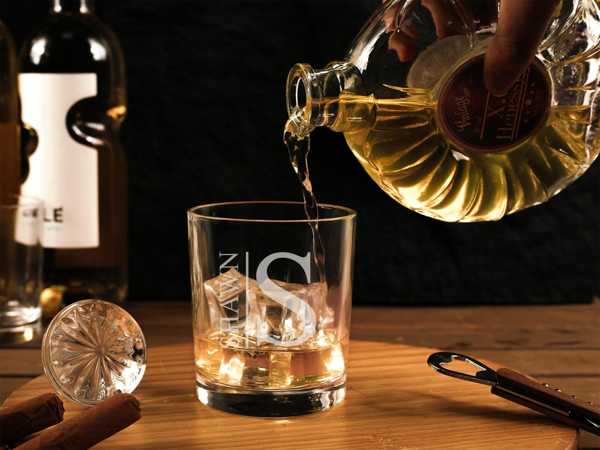 Custom Engraved Whiskey Glasses, Whiskey Glasses Personalized, Mono...