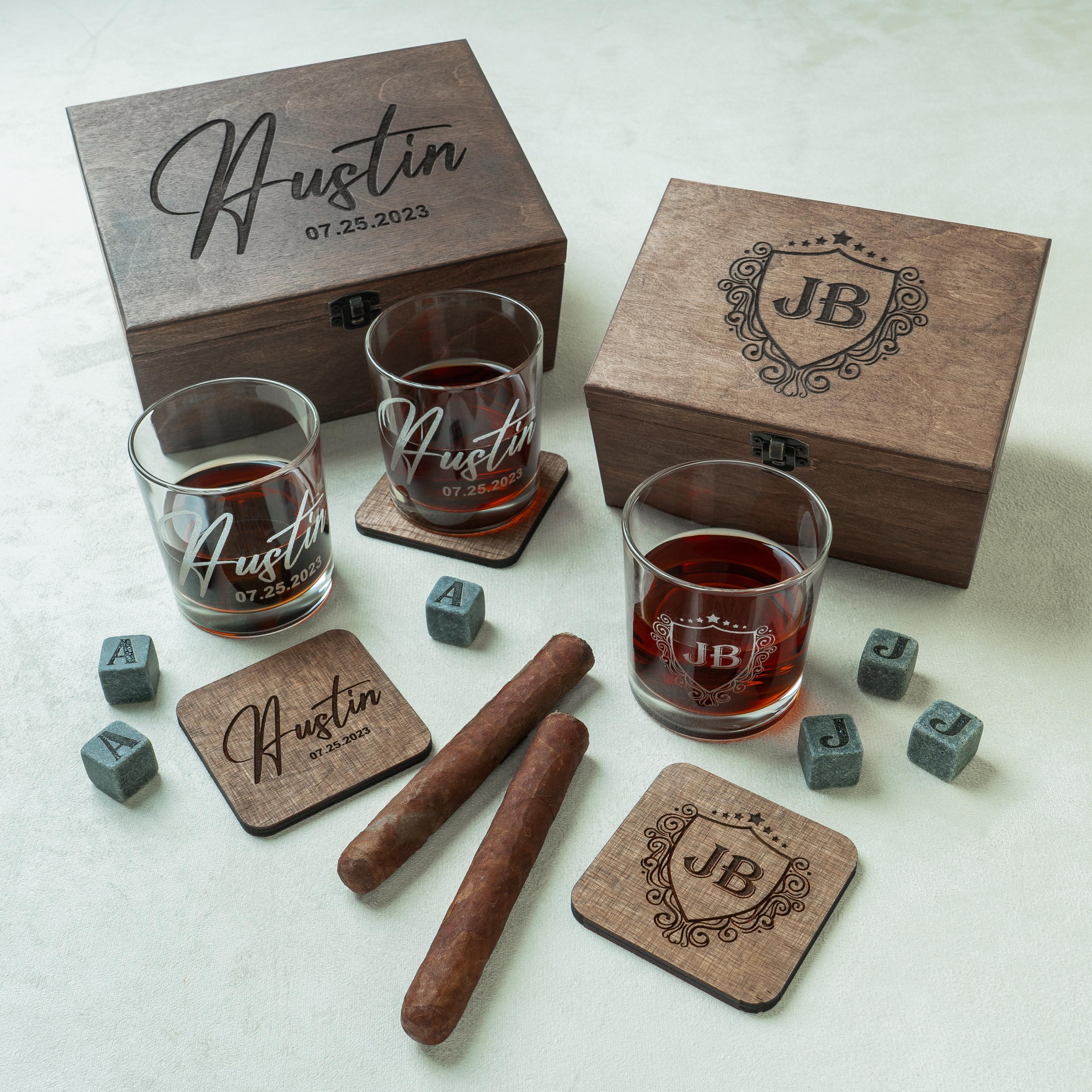Personalized Whiskey Glasses Set, Custom Whiskey Glasses in Wooden ...