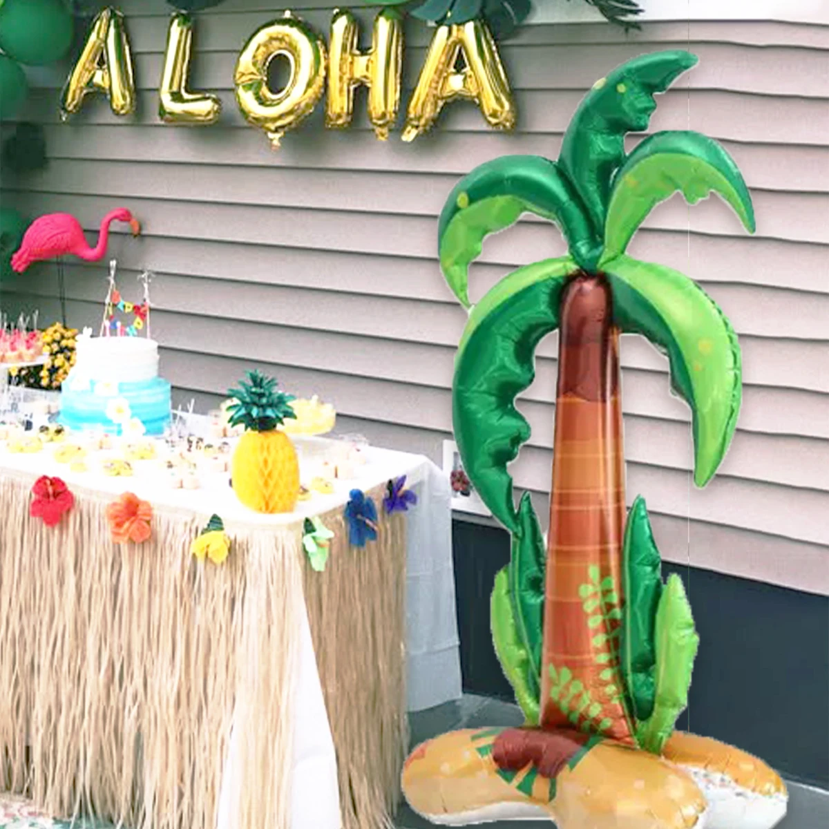 1pc Extra Large Size Aluminum Foil Coconut Tree Shaped Balloon with Stand Base, Summer Party, Birthd...