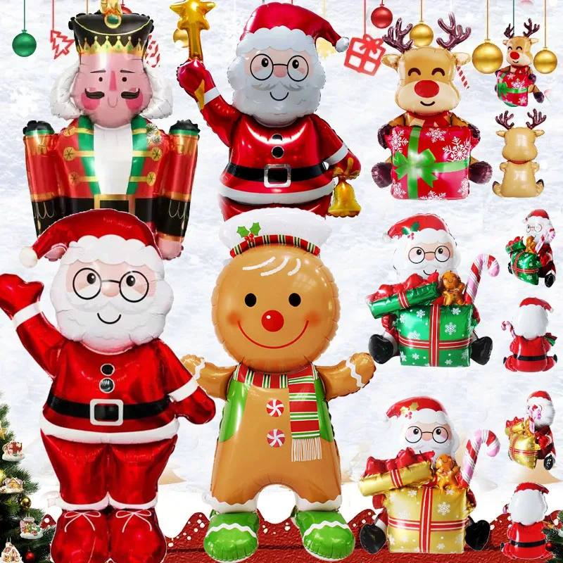 Extra large 3D gingerbread man balloon Santa Claus reindeer hug gift box balloons Christmas party de...