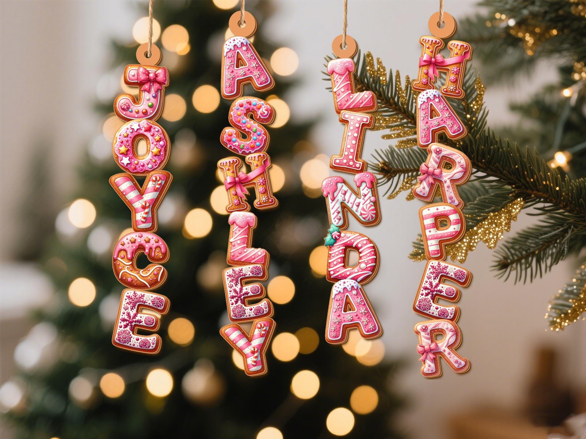 Custom Pink Gingerbread Alphabet Ornament,Custom Kid Name Ornament,...