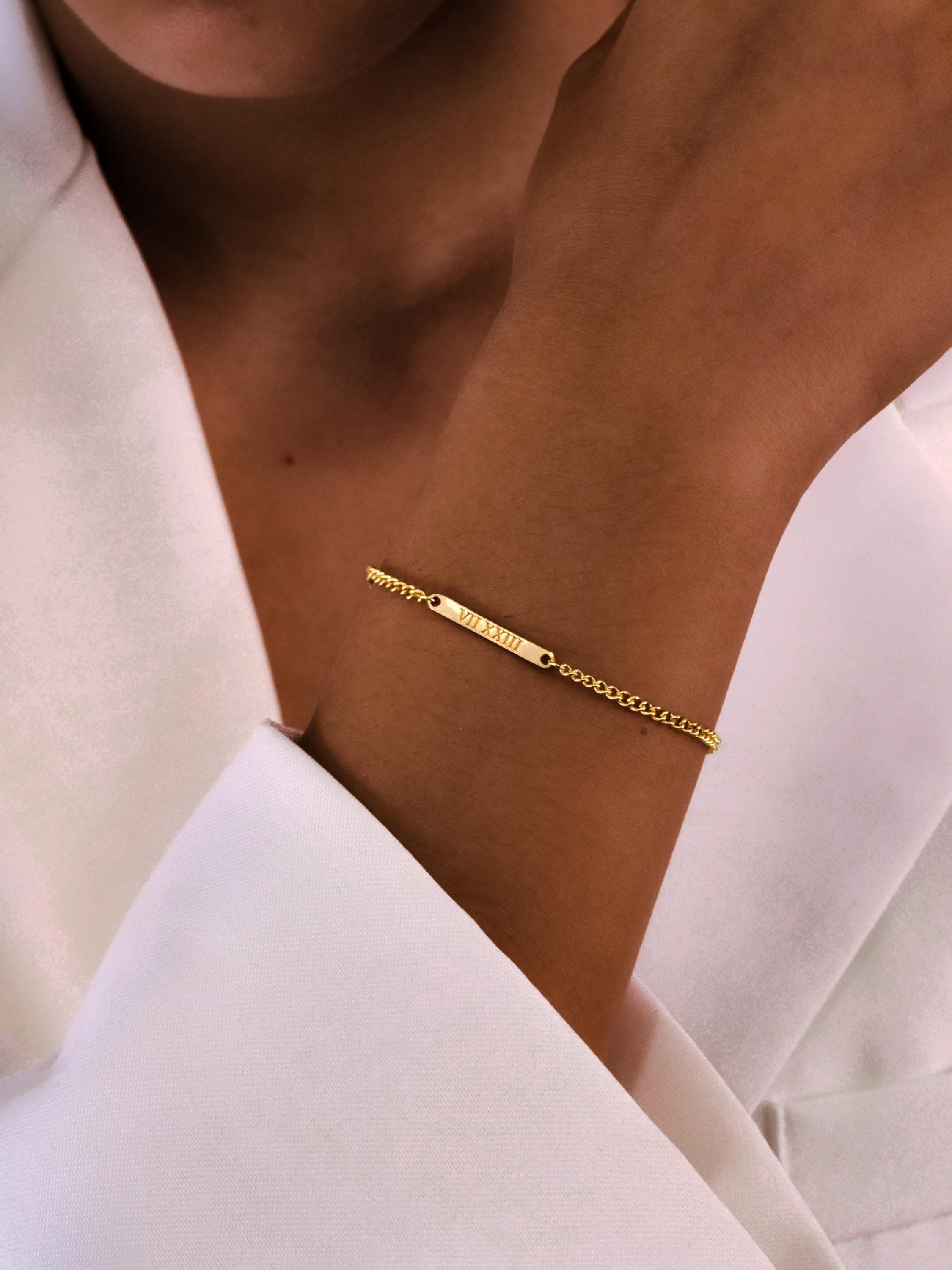 Gold Filled Personalized Name Bracelet Laser Engraved Bar Family Ki...
