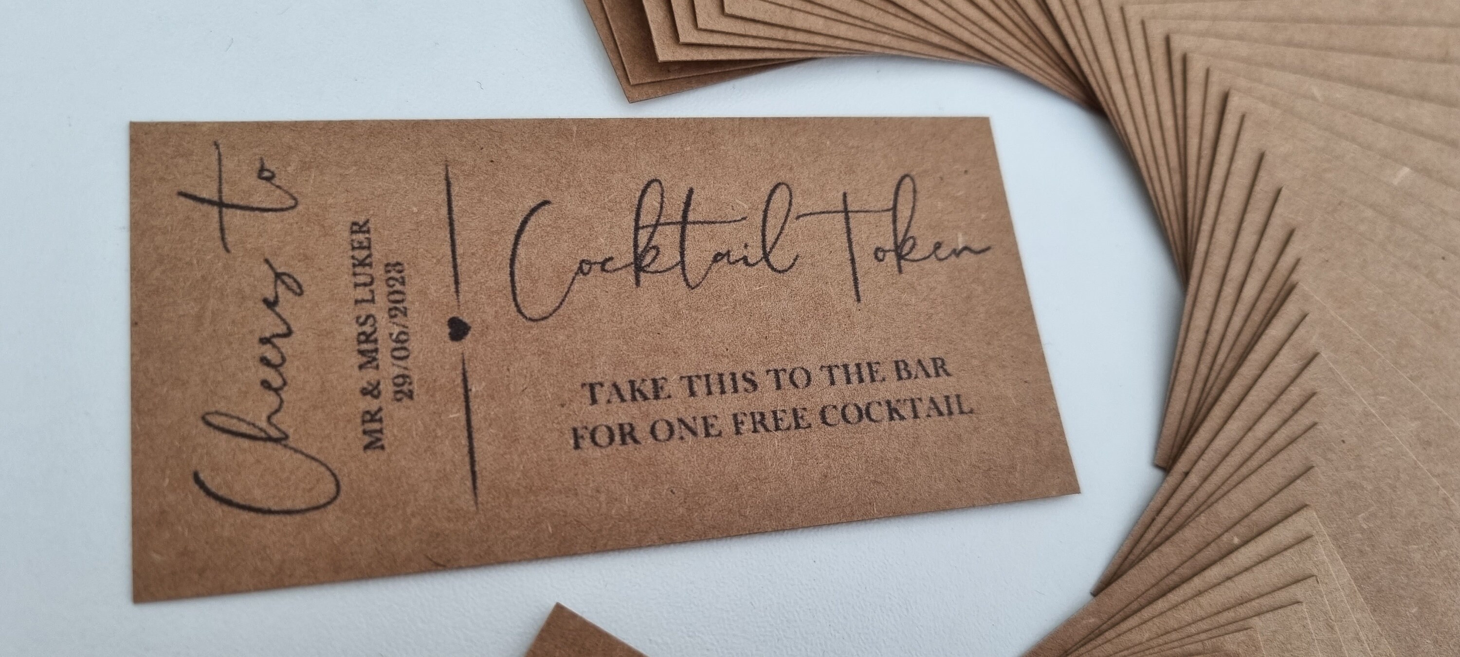 Wedding or party drinks tokens/coupons for guests Free drink at the bar - cocktails, wine, beer Kraf...