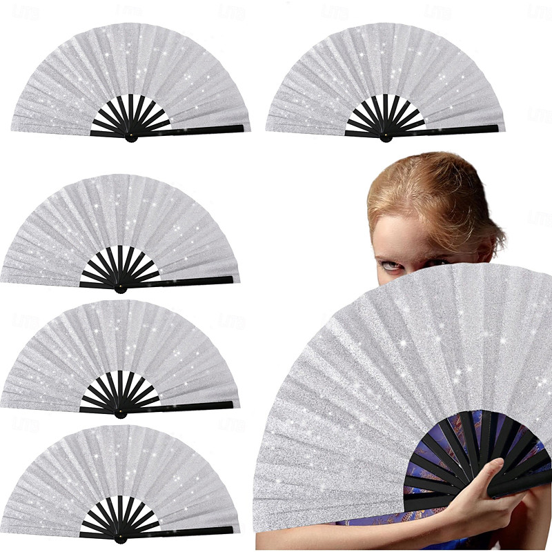 5pcs Boots on The Ground Fan Large Holographic Folding Hand Fan Lin...