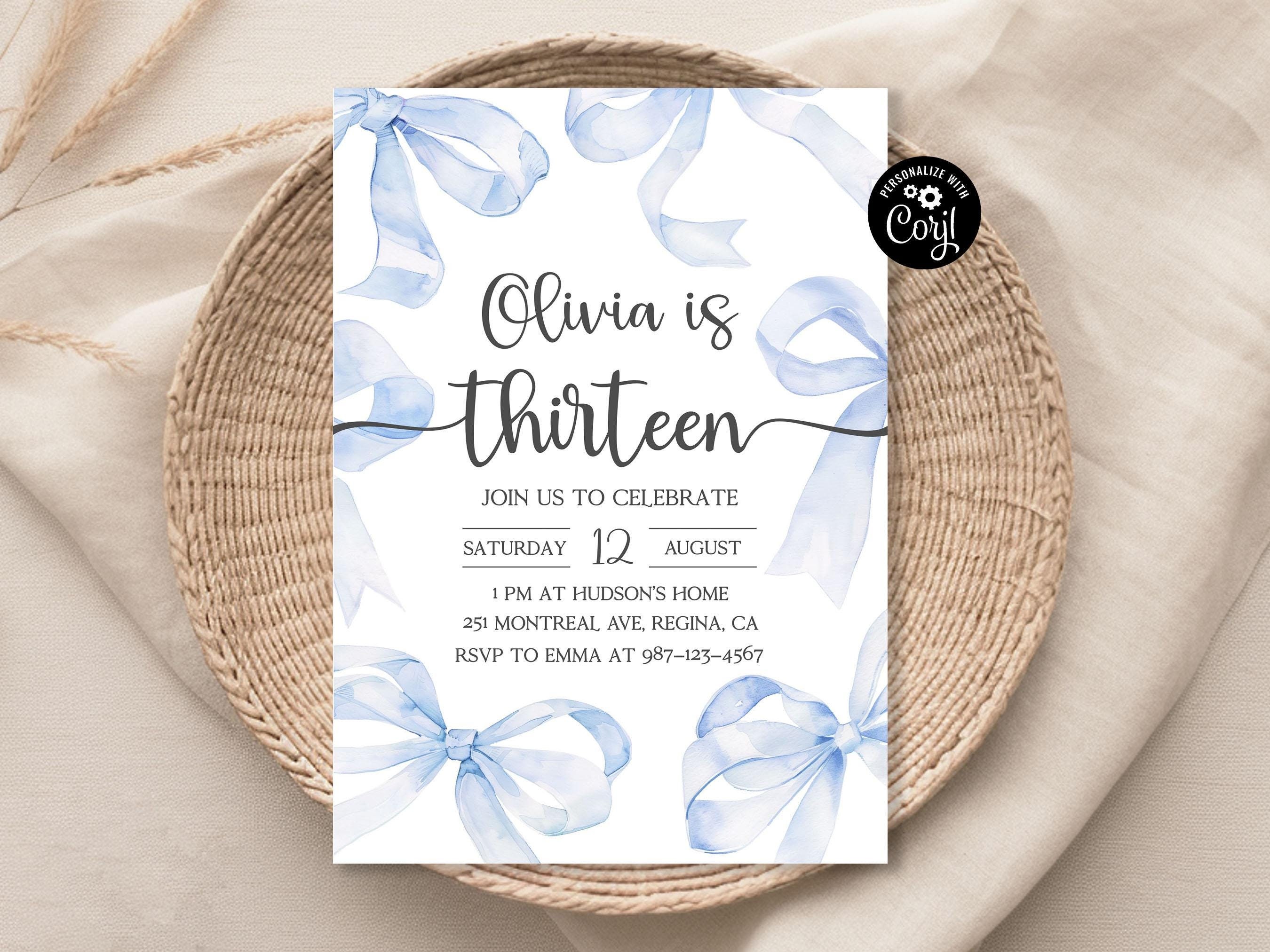 Blue Coquette 13th Birthday Invitation Boy Girl Mobile 13th Birthda...