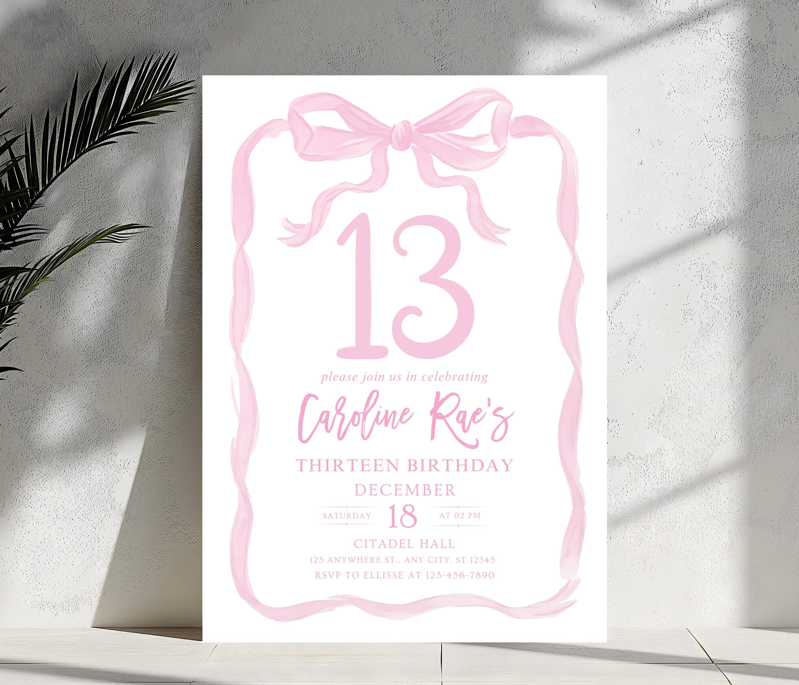 Coquette 13th Birthday Invitation Fancy Bow Birthday Invitation Sle...