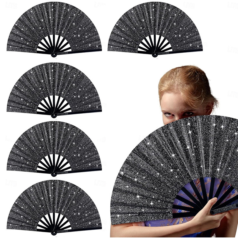 5pcs Boots on The Ground Fan Large Holographic Folding Hand Fan Lin...