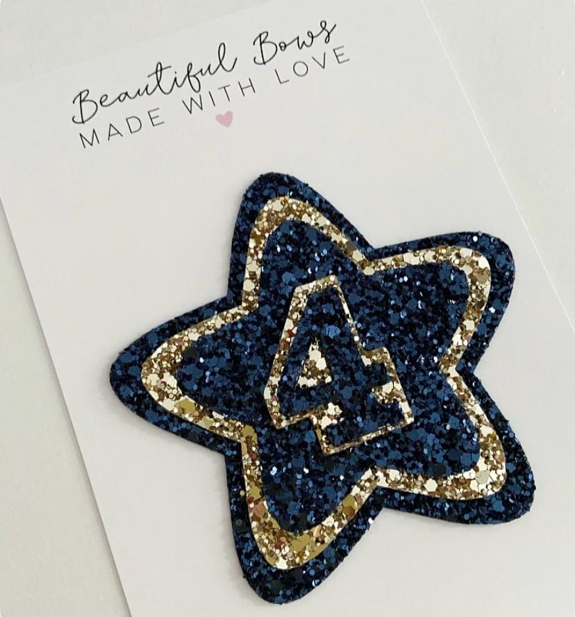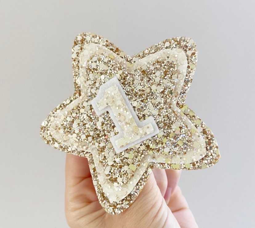 Hand made birthday badge. Measures approximately 9cm Made with glitter fabric and leatherette. Patte...