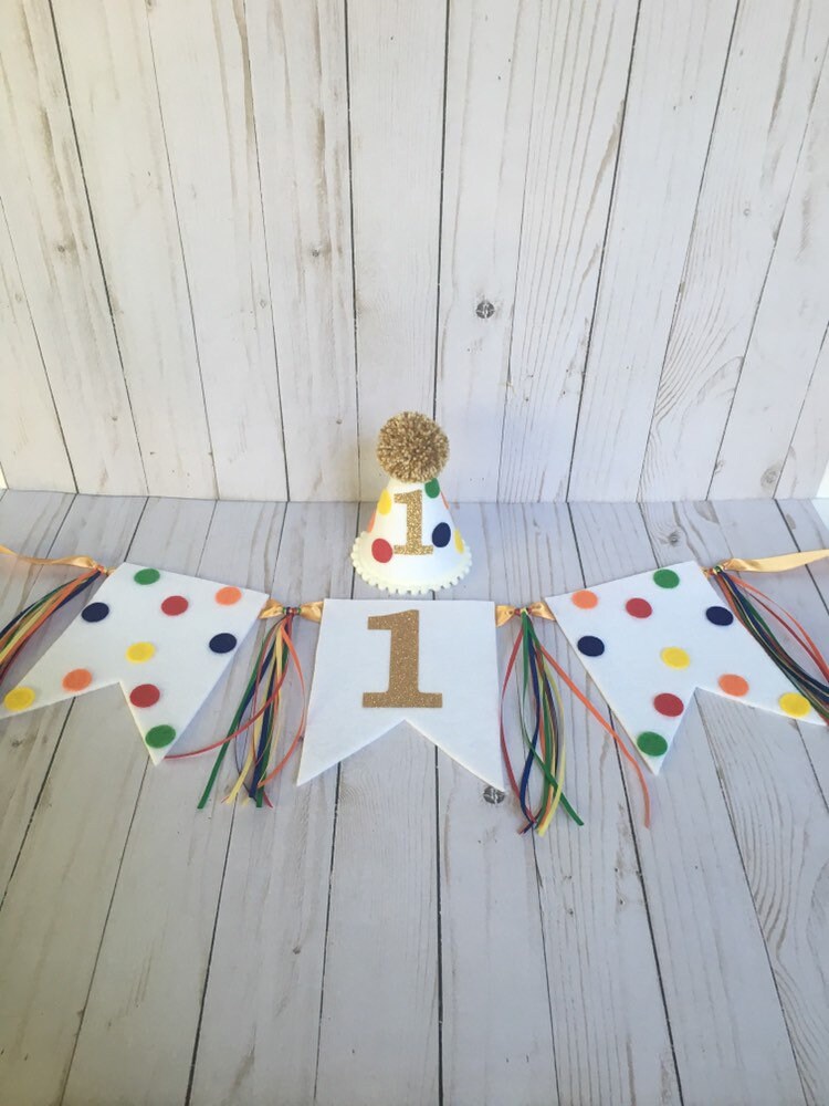 First birthday hat, banner, cake topper - boys 1st birthday party h...