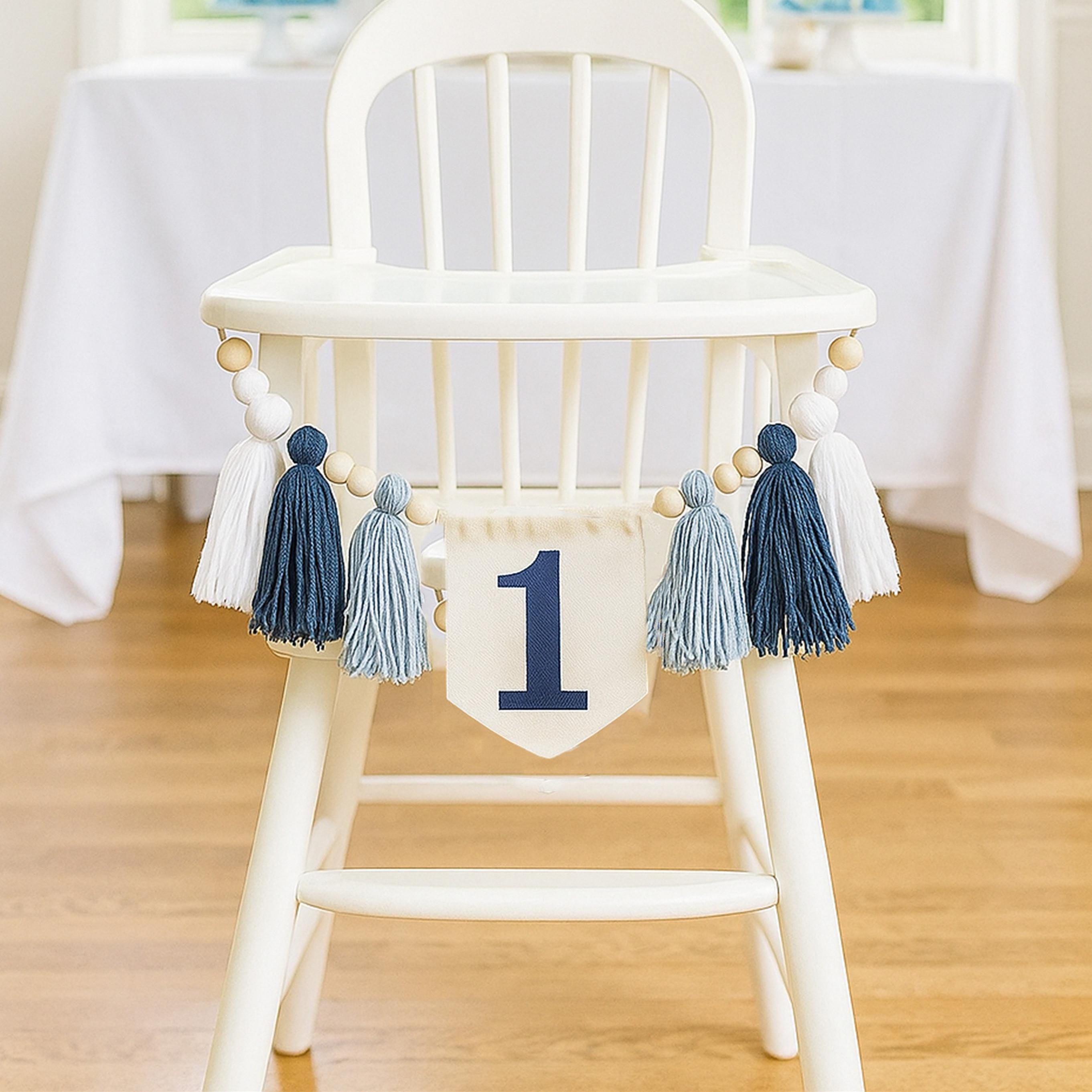 Blue Highchair Banner for 1st Birthday - Baby Boy Cake Smash Decor,...