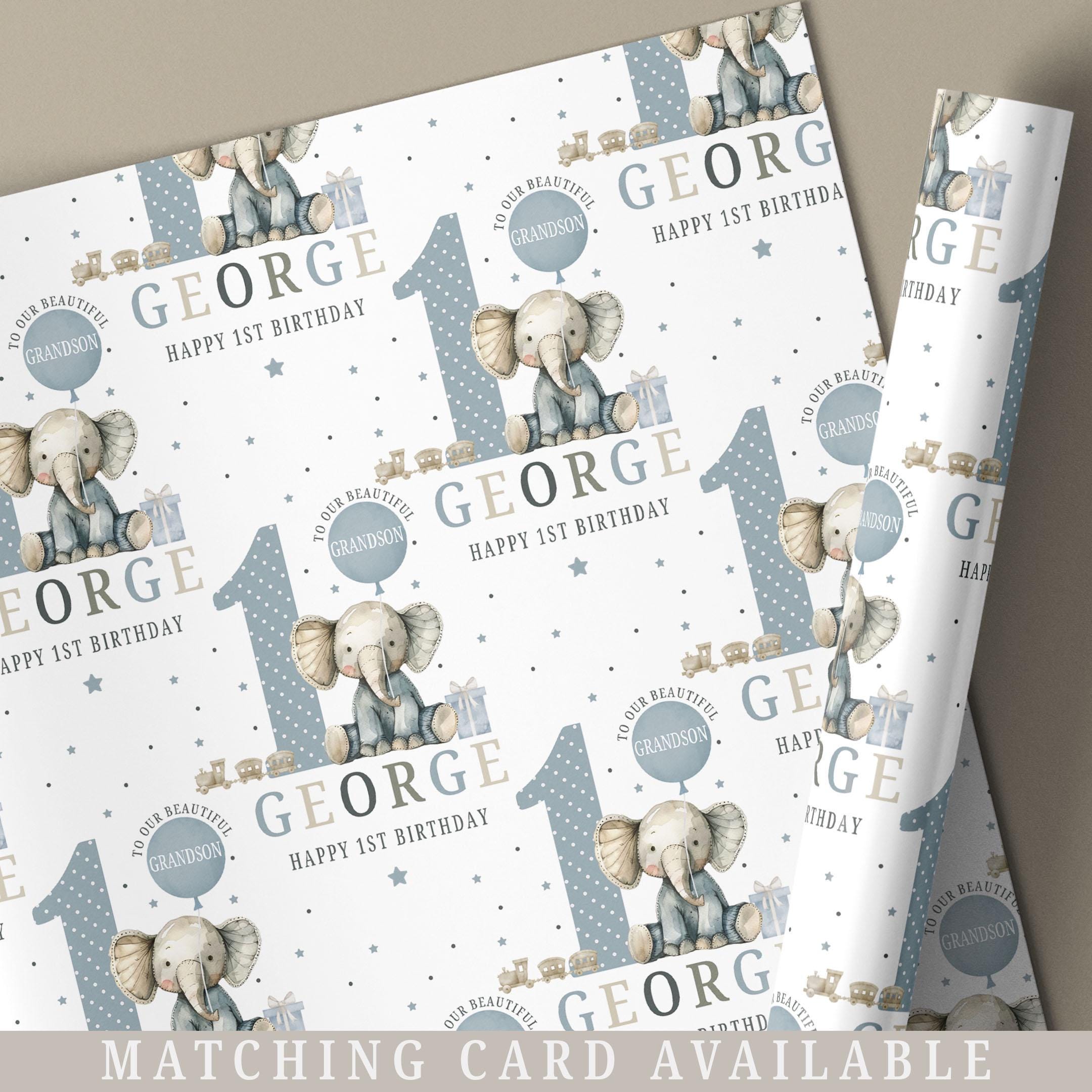 Boy's First Birthday Gift Wrapping Paper, Personalised Happy 1st Bi...