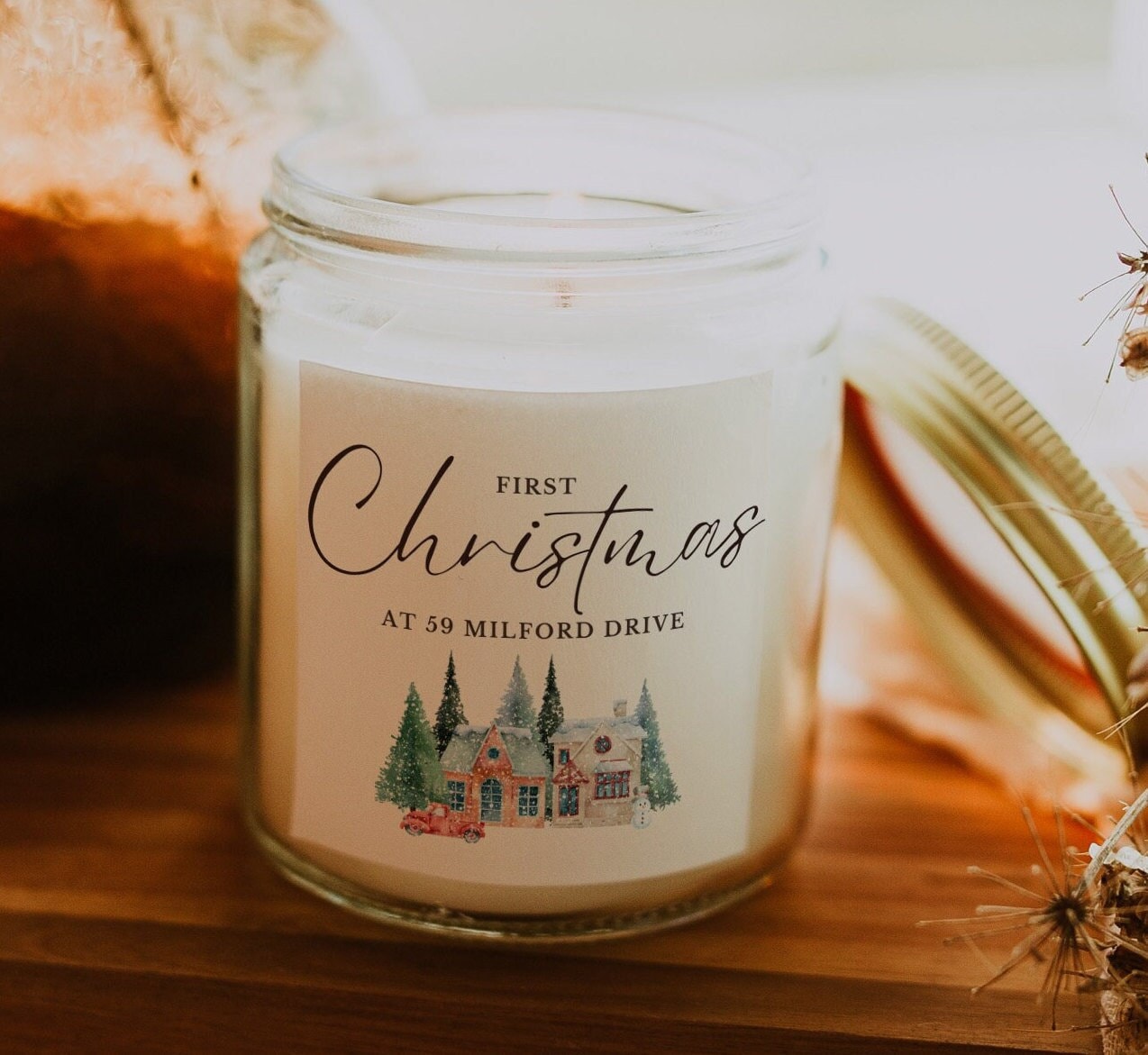Personalised First Christmas in New Home Candle Gift Vegan Soy Wax ...
