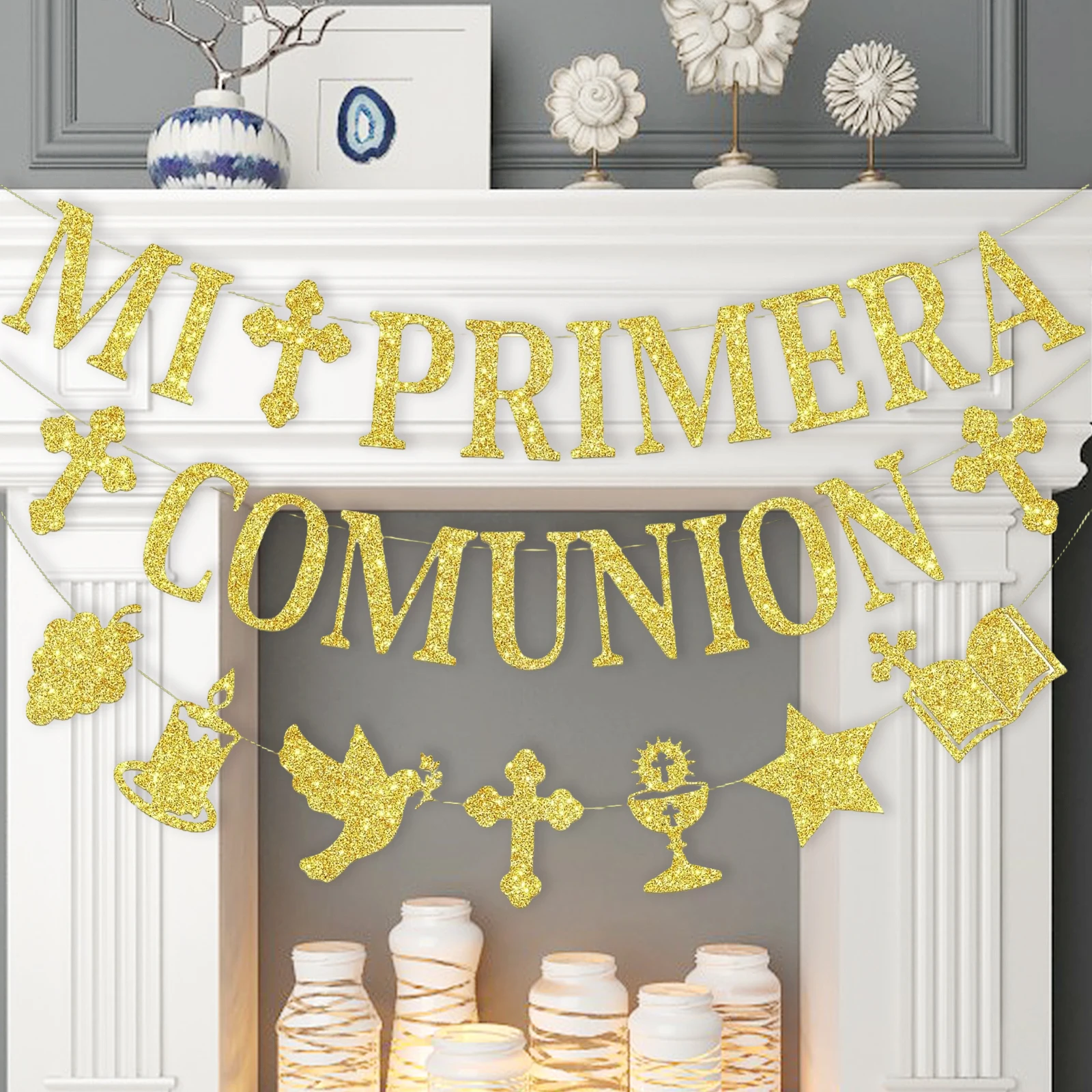 MI Primera Comunion Decoracion Banner, First Communion Decorations MI Primera Comunion Banner, Glitt...