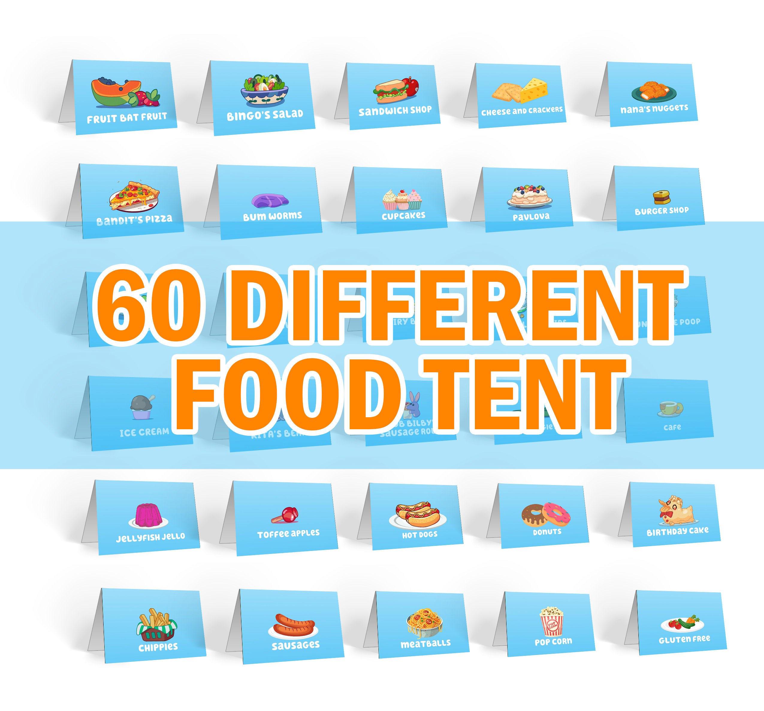 60 Different Blue Birthday Party Food Tent, Party Decor Food Label,...