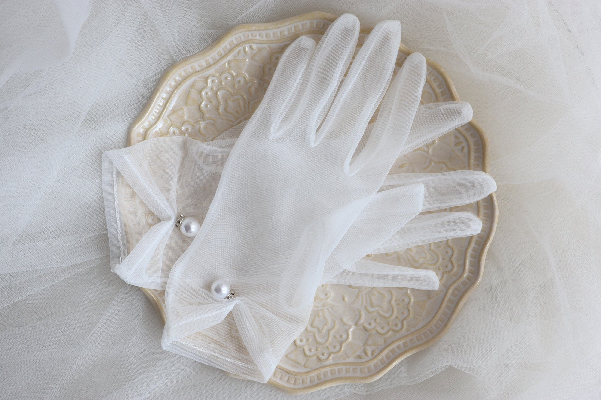 Vintage Bride Wedding Gloves Short White Net Yarn gloves Dress glov...
