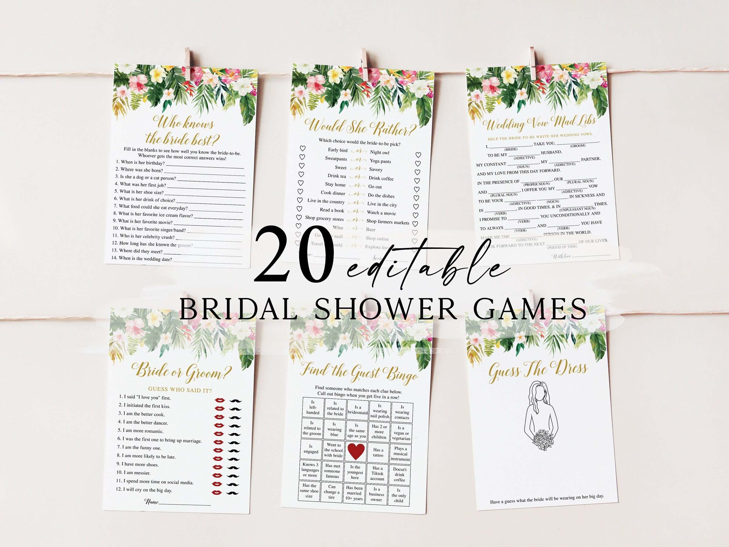 20 Tropical Bridal Shower Games, Printable Bridal Shower Games, Tro...