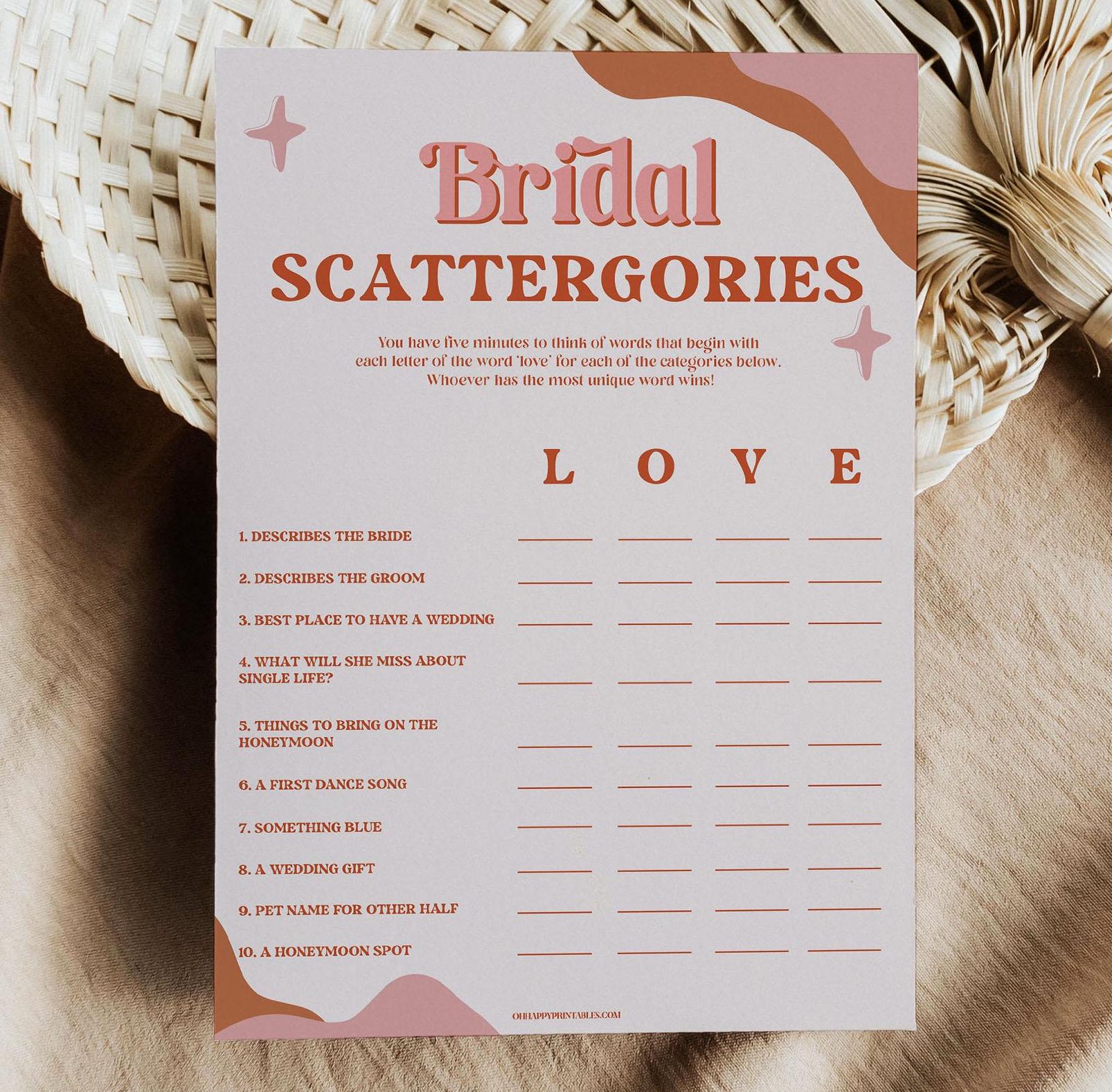 RETRO 70s Bridal Shower Scattergories Game, 70s Modern Bridal Showe...