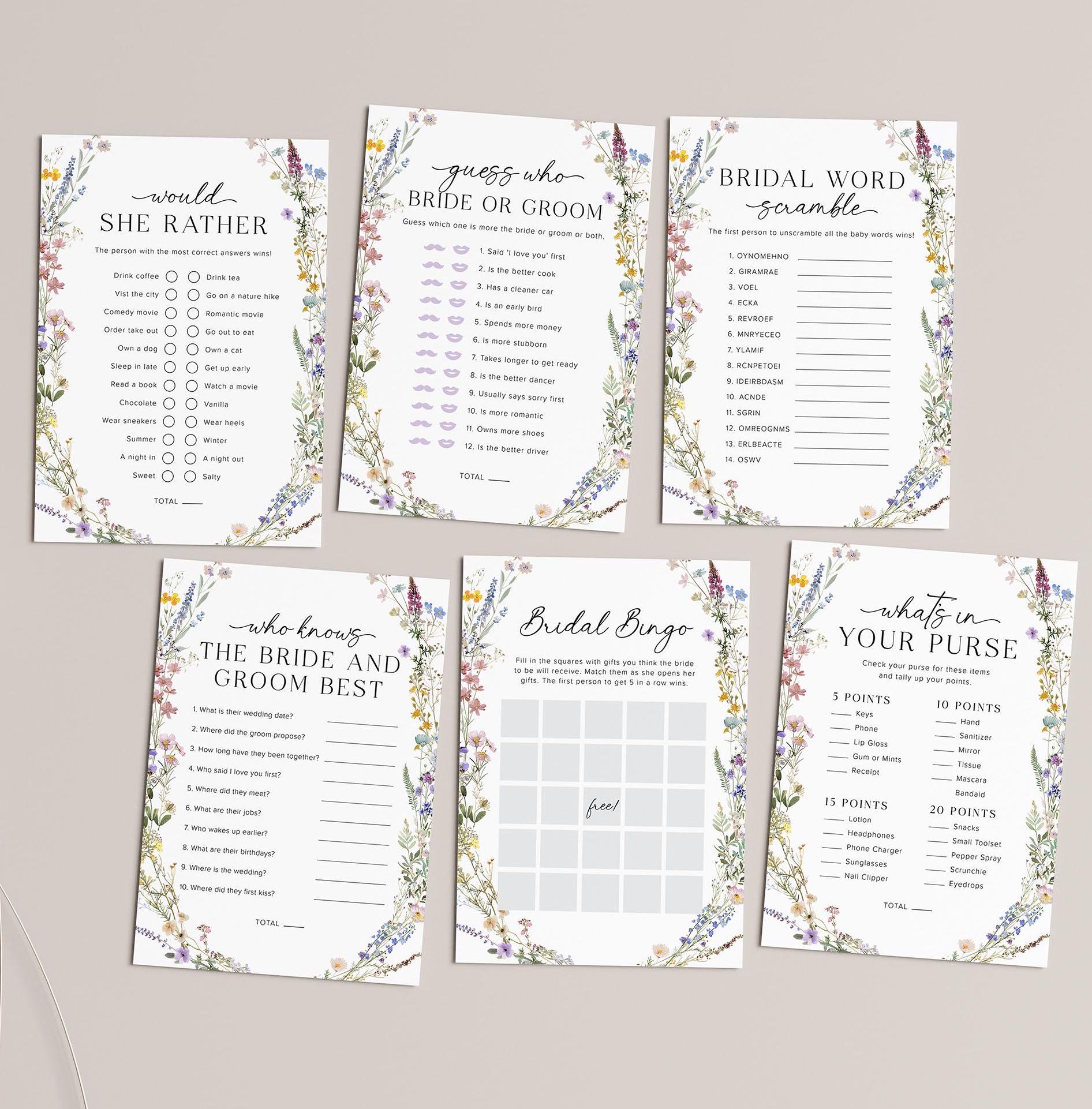 "Wildflower Bridal Shower Games Bundle Template Have fun with your family and friends at your b...