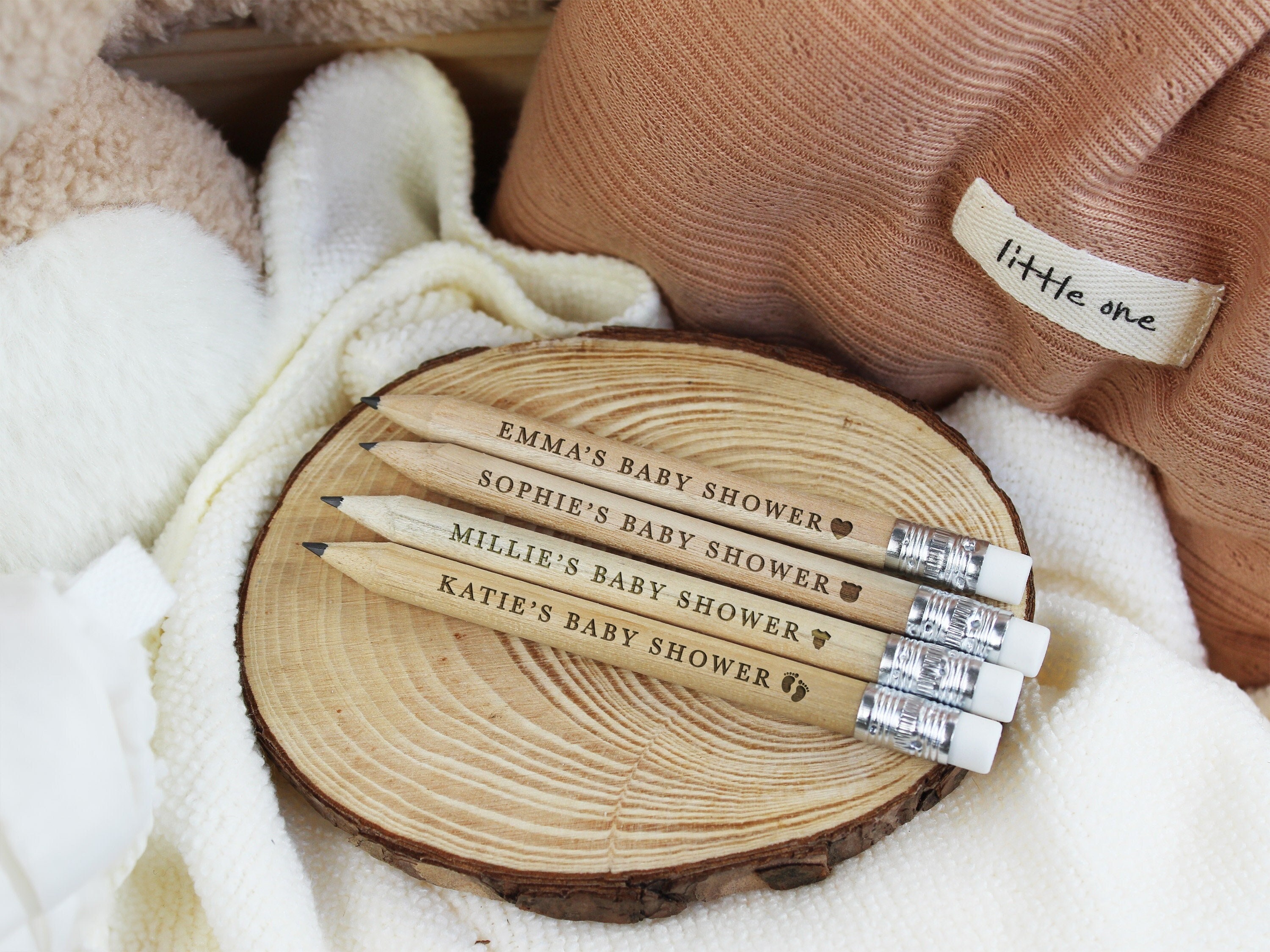 Personalised Baby Shower Favours, Baby Shower Pencils, Laser Engrav...