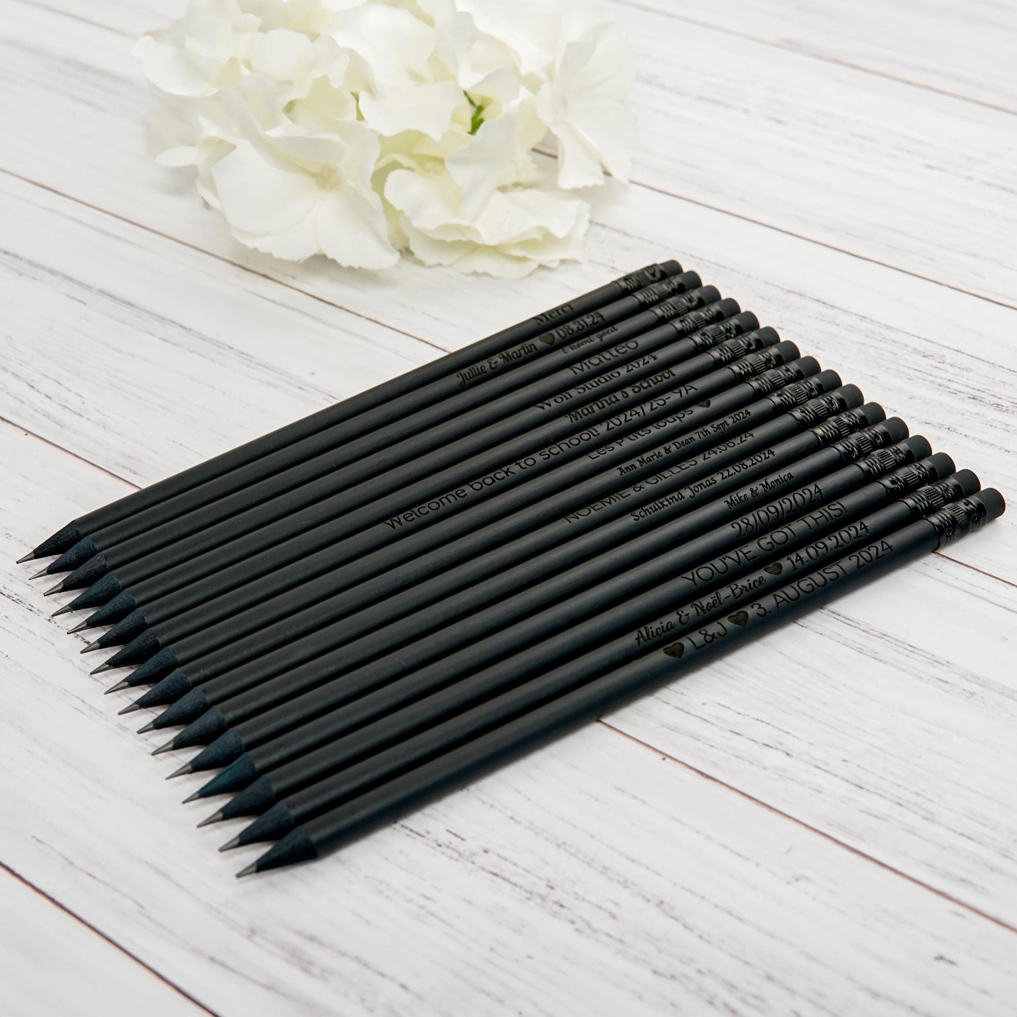 Custom Black Pencils Set, Engraved Pencils, Customized Bulk Pencils...