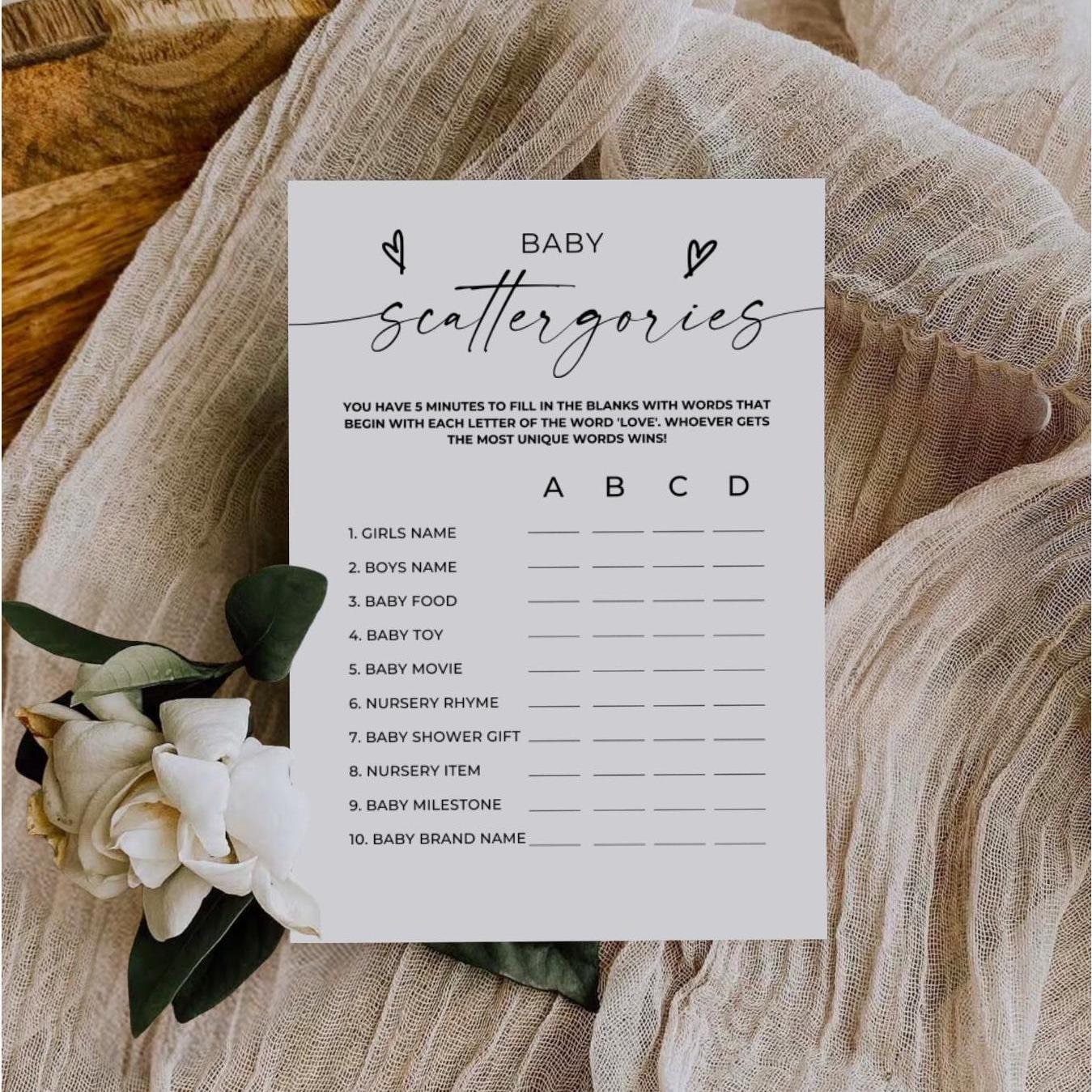 Scattergories Baby Shower Game, Baby Shower Trivia, Baby Shower Bun...