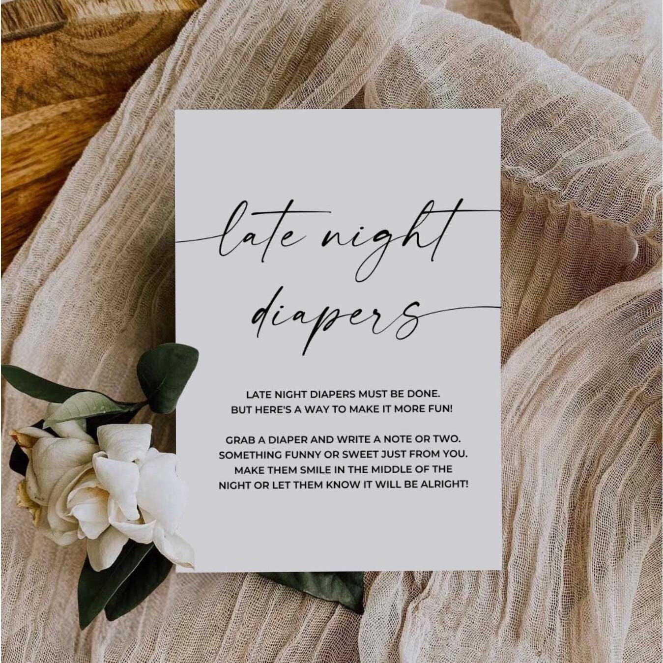 Late Night Diapers Game, Baby Shower Game, Baby Shower Sign, Baby T...