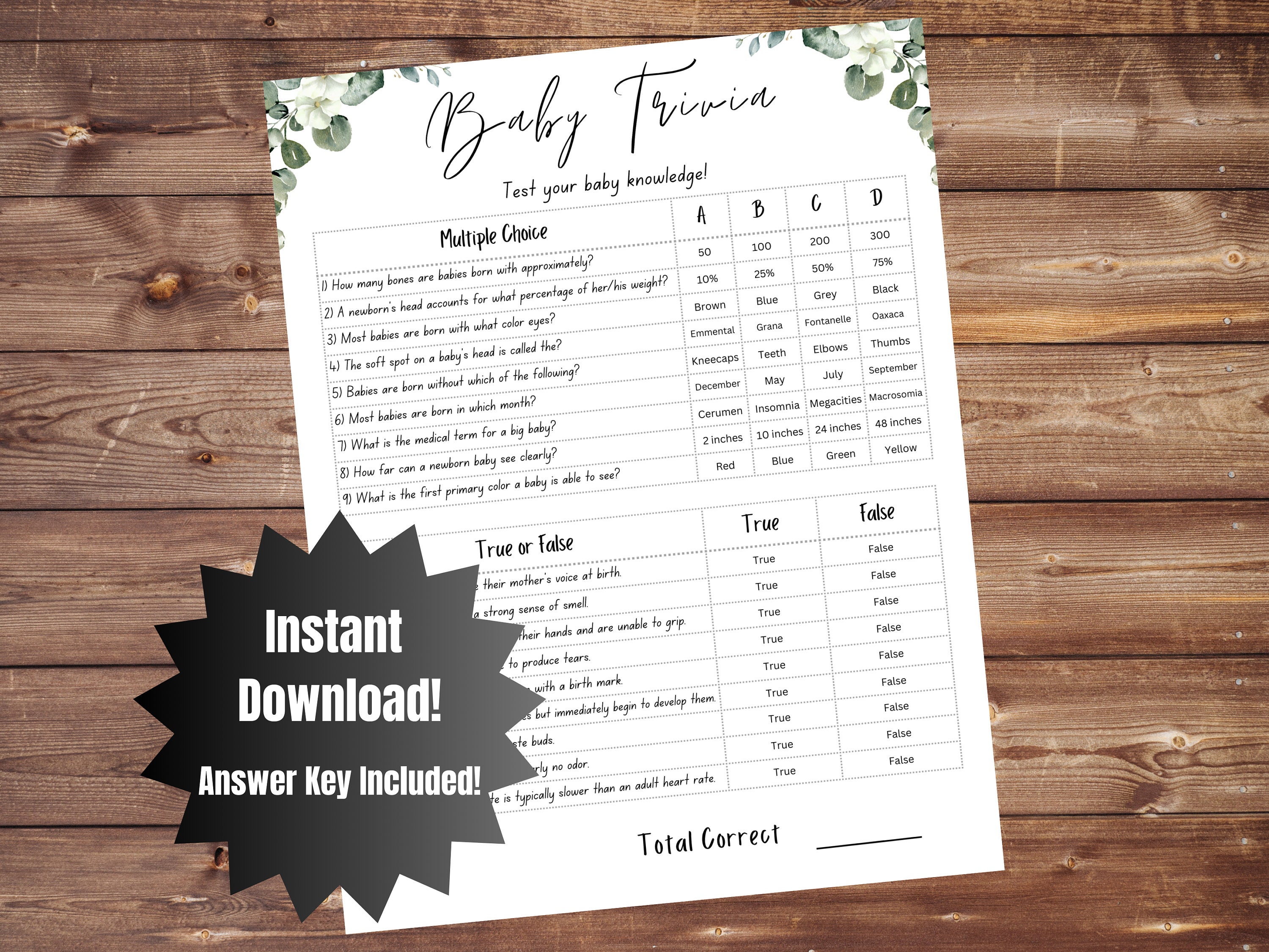 Baby Trivia Shower Game Baby Trivia Baby Shower Game Baby Shower Tr...