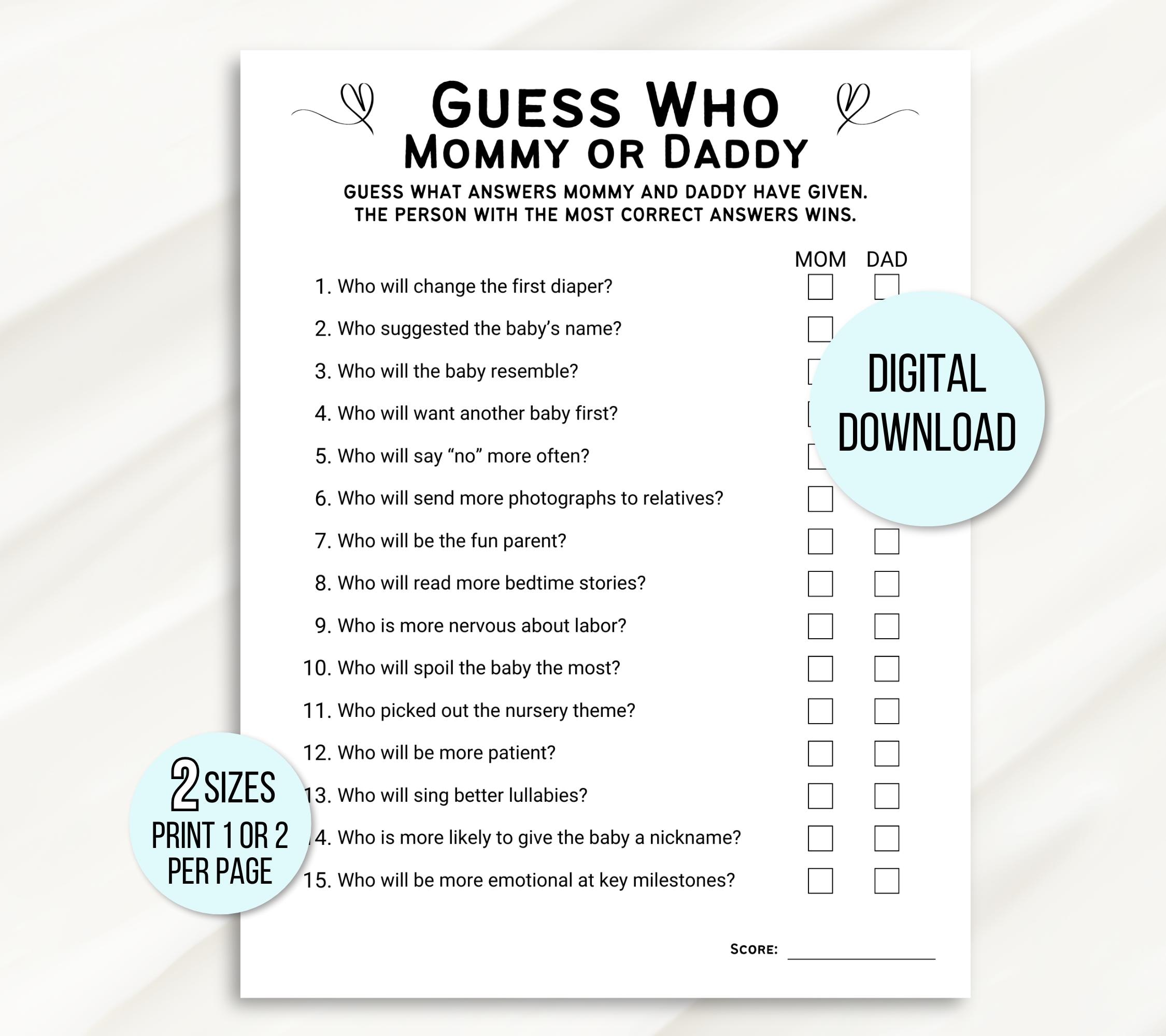 Guess Who Mommy or Daddy Game, Baby Shower Game, Mommy or Daddy Gam...