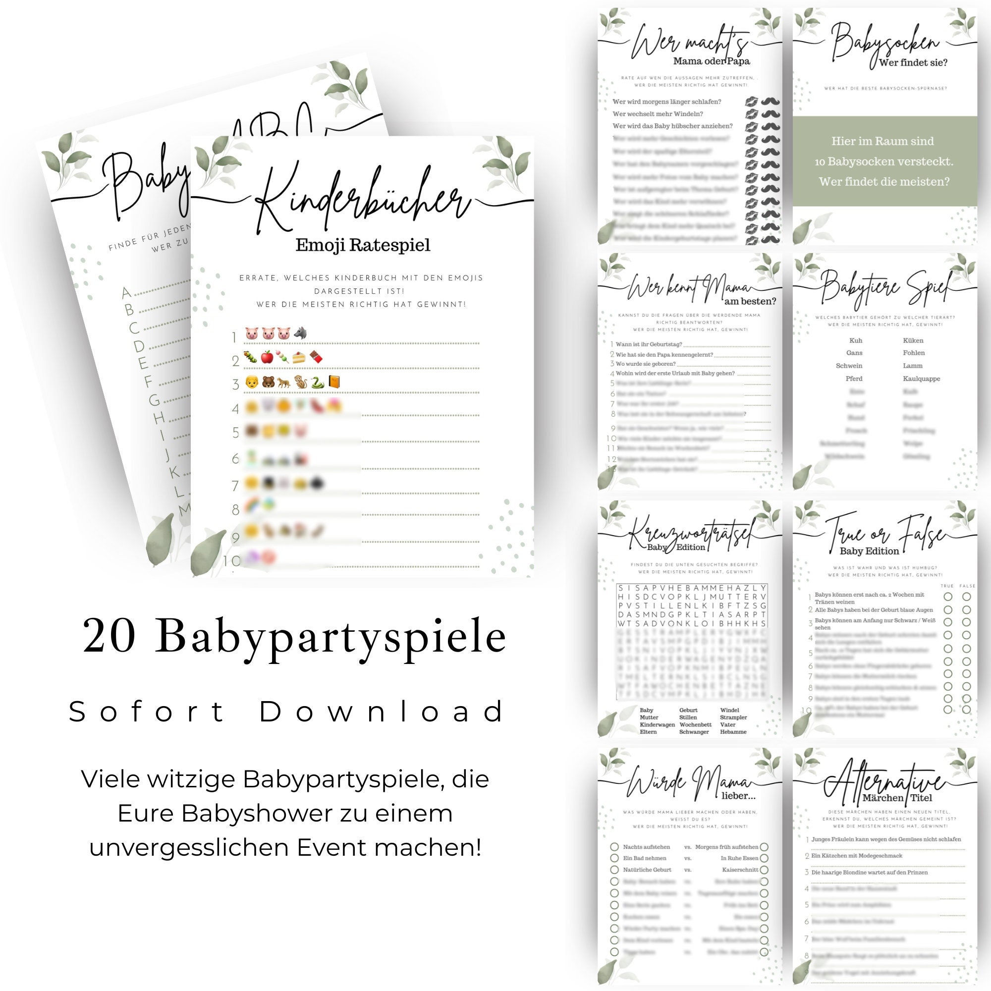 Baby Shower Games (German) 20 Baby Shower Games Set Printable PDF G...