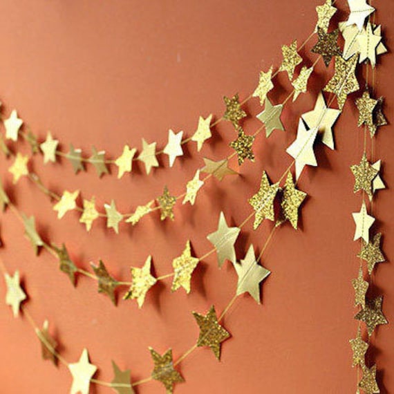 Gold glitter stars garland decor-Silver glitter stars garland decor...