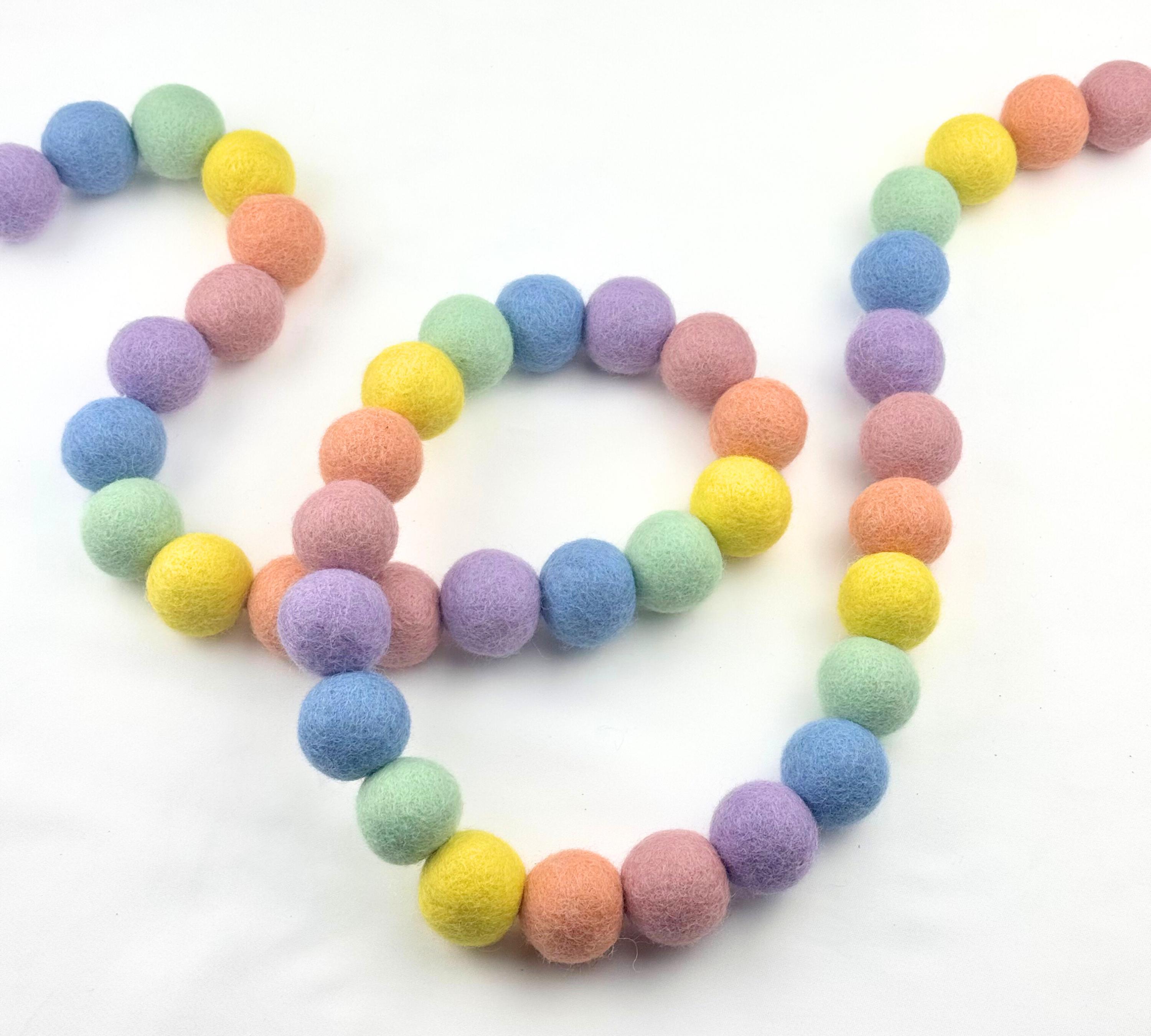 Pastel Rainbow Felt Ball Garland/ Spring Garland Decor/ Easter Felt...