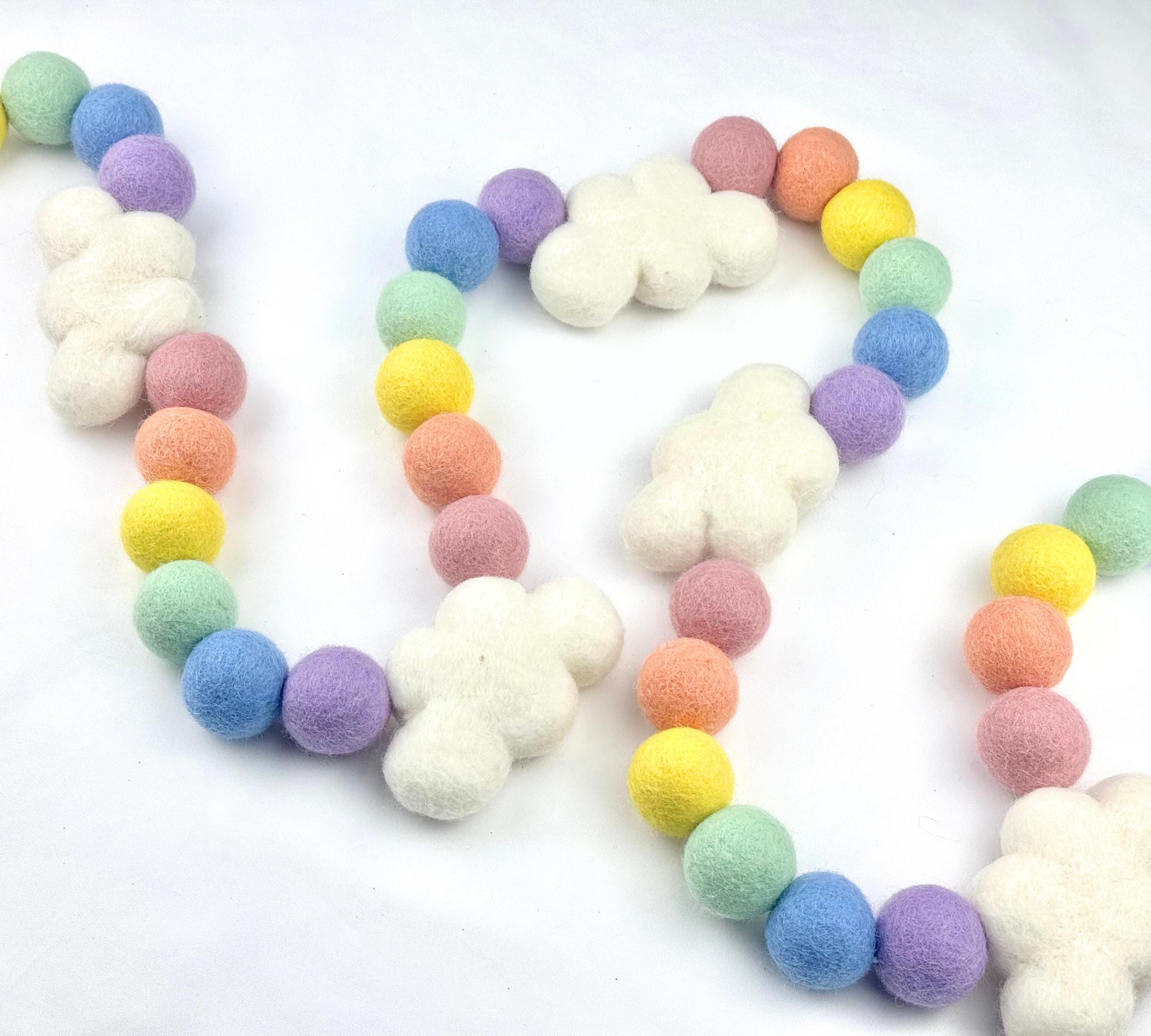 Pastel Rainbow And Cloud Felt Ball Garland/ Spring Garland Decor/ E...