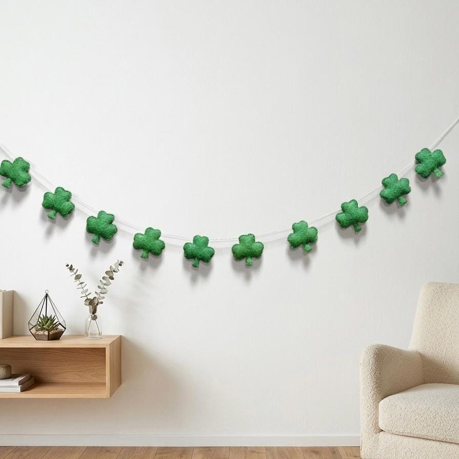 Wool Felt Shamrock Garland, St Patrick's Day Garland Decor, Lucky C...