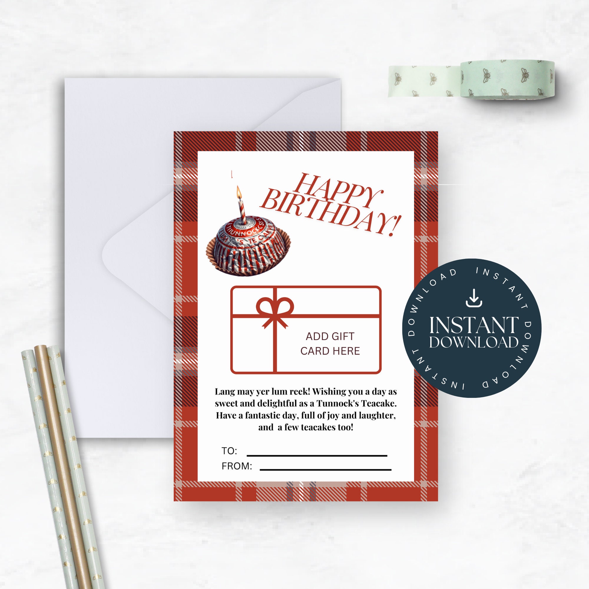 Tunnock's Teacake Birthday Gift Card Holder | Printable 5x7 Card | ...