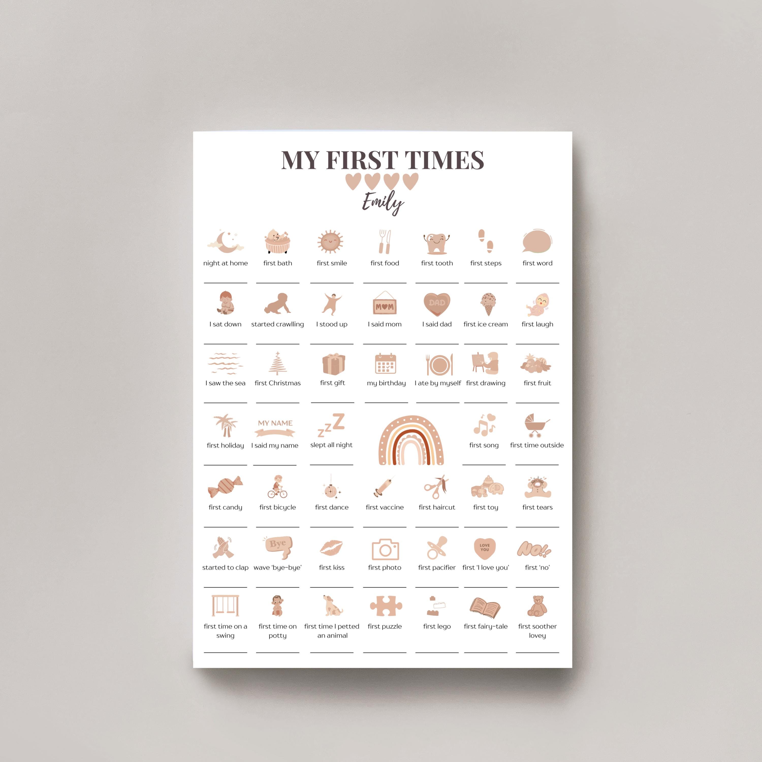My First Times, Gift For A New Born Baby, Editable Baby First Times...